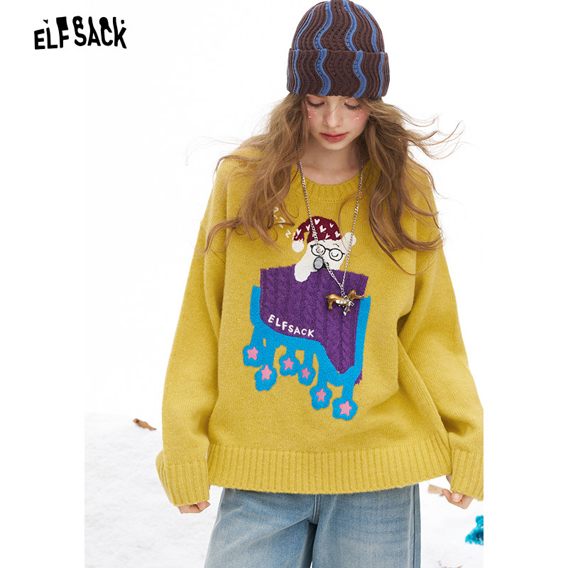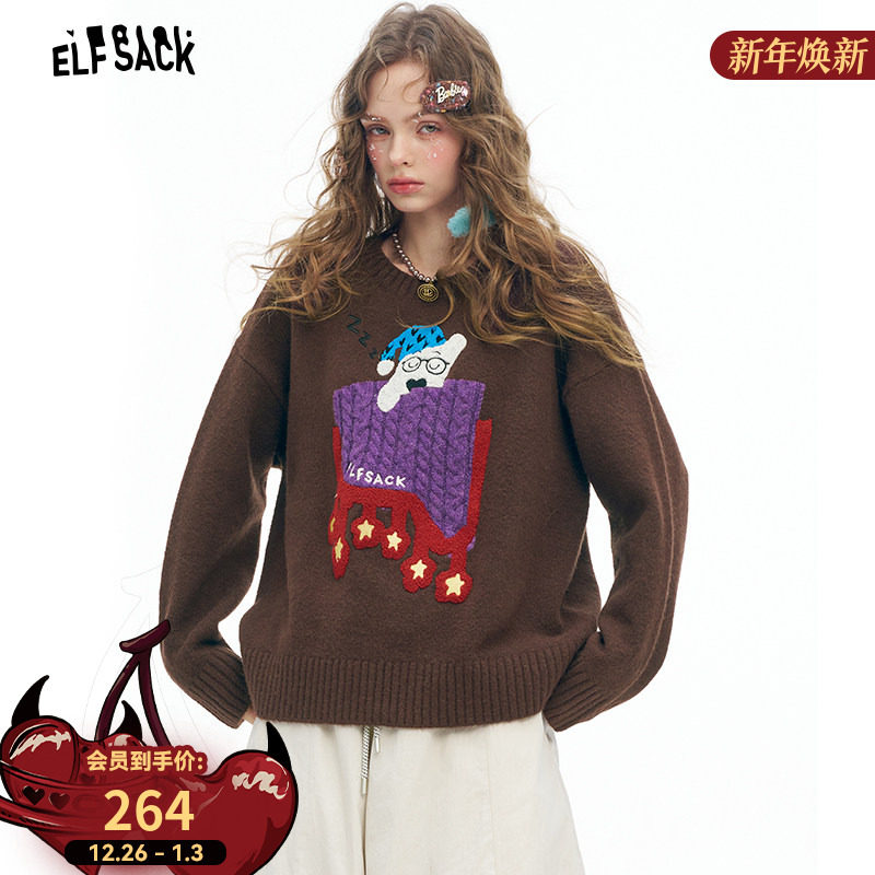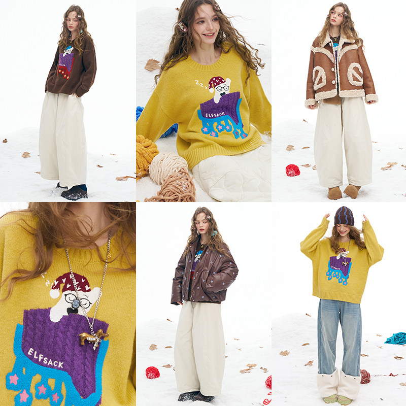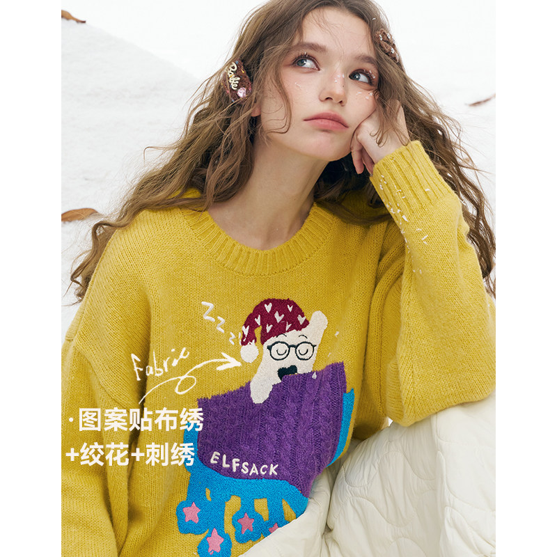 妖精的口袋复古小狗刺绣绵羊毛毛衣女2025冬新款甜美显瘦新年穿搭