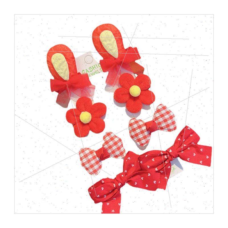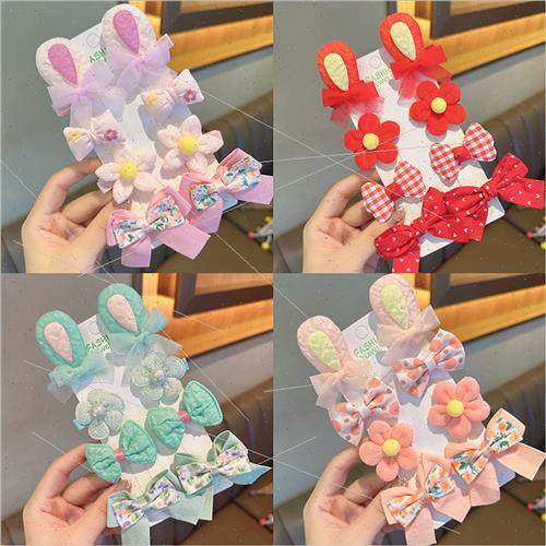 Korea bow hair clip cloth rabb ears flowers fresh sweet cute