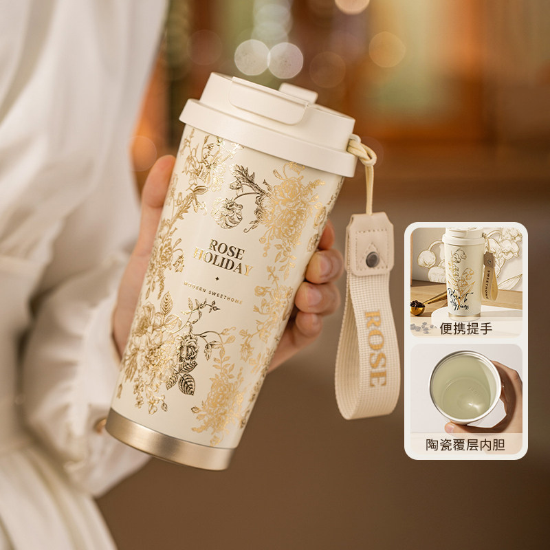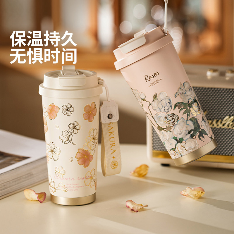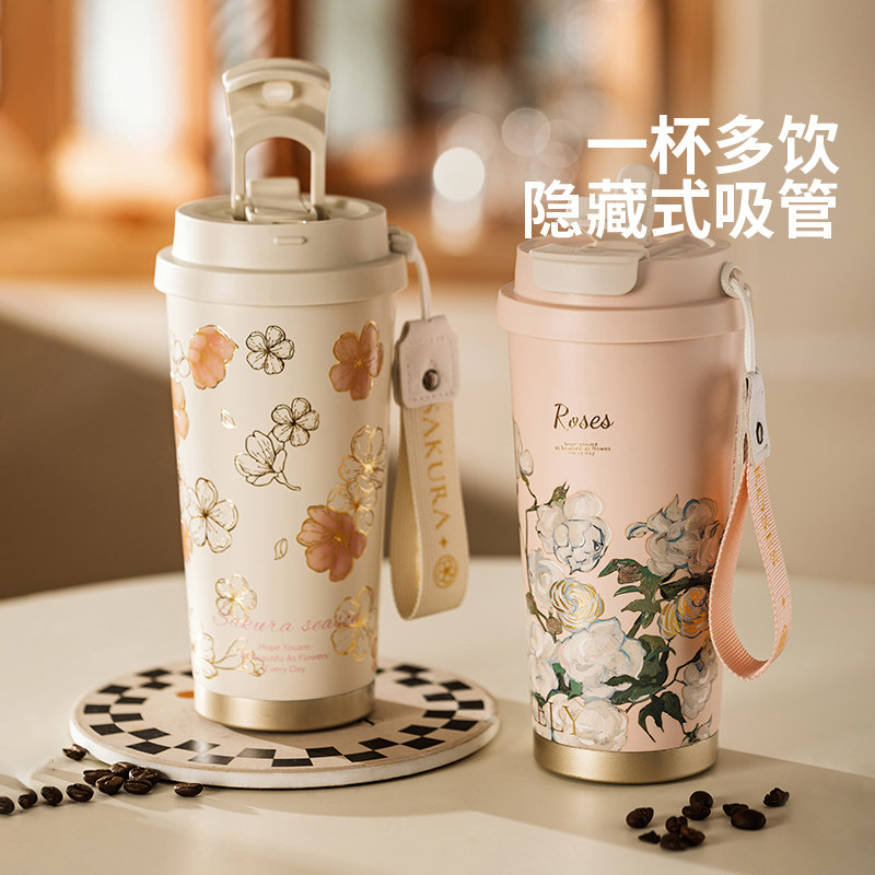 摩登主妇纯钛保温杯女高颜值2025新款水杯吸管杯生日礼物咖啡杯子