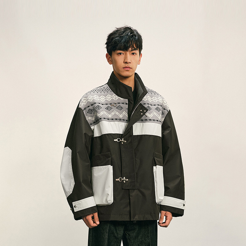 再生涤纶复合材质,前片图案拼接时尚前卫