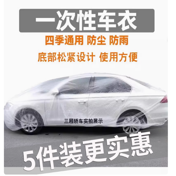 5个装一次性车衣防晒遮阳防雨塑料透明汽车套简易喷漆车罩防尘罩