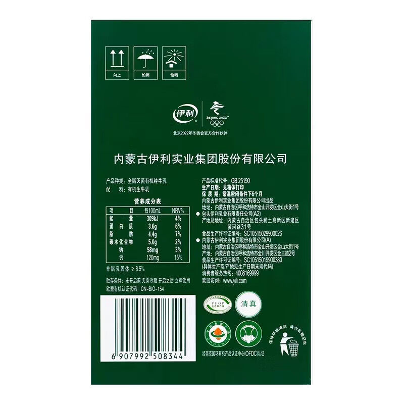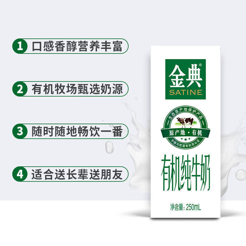 伊利金典【有机】纯牛奶整箱3.6g蛋白中欧双认证学生早餐正品礼盒