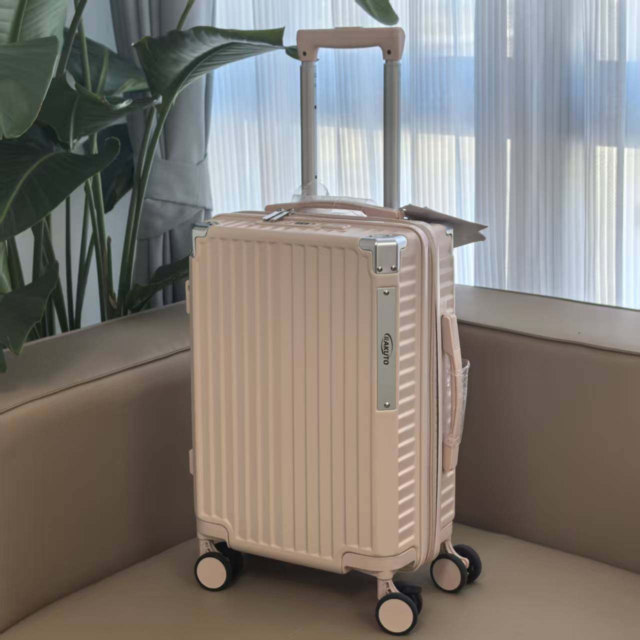 出口日本清高端旅行箱带杯架挂钩USB行李密码箱静音轮带刹车时尚