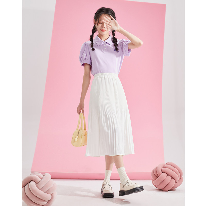 唐狮夏女半身裙甜美淑女雪纺气质少女高腰显瘦纯色a字长裙裙子