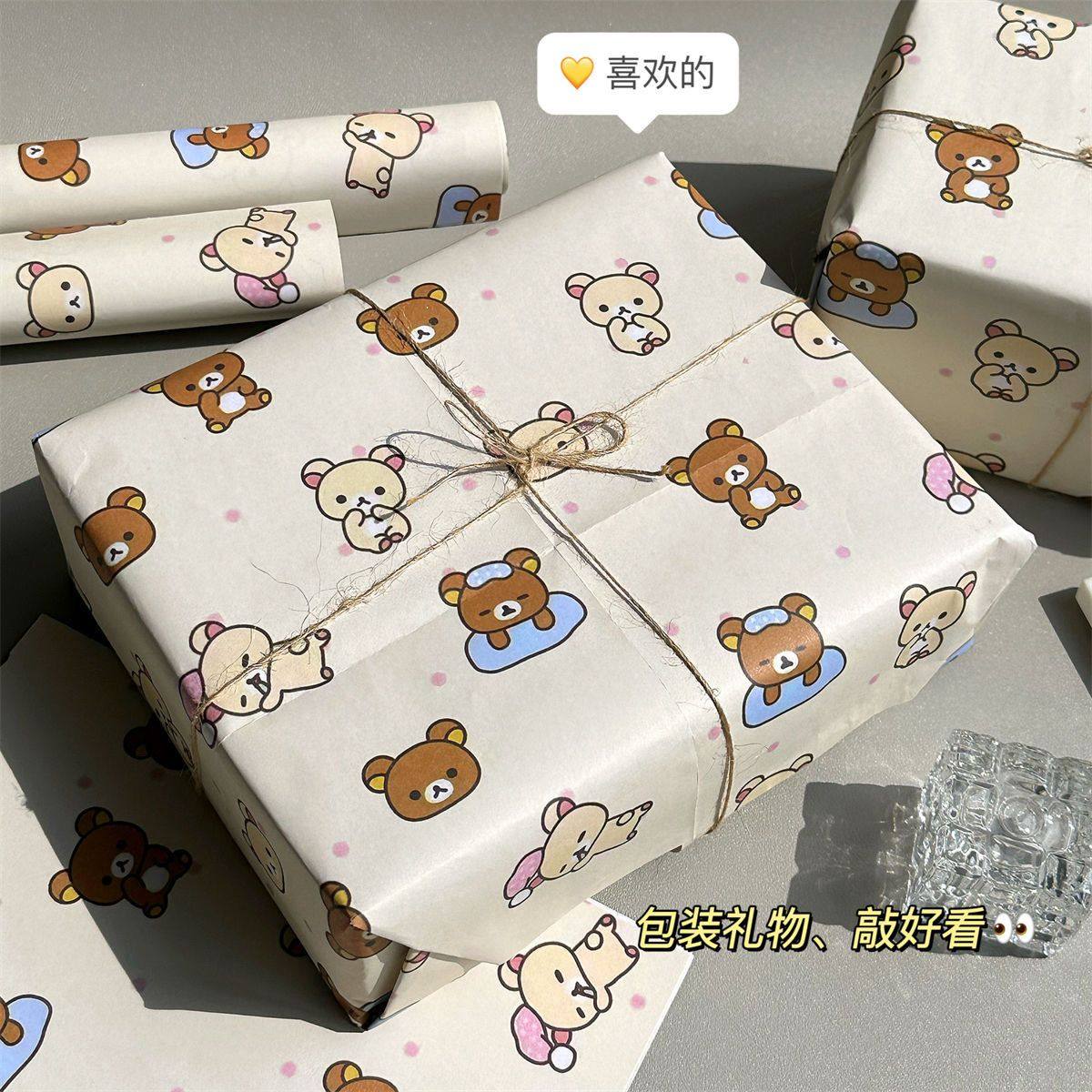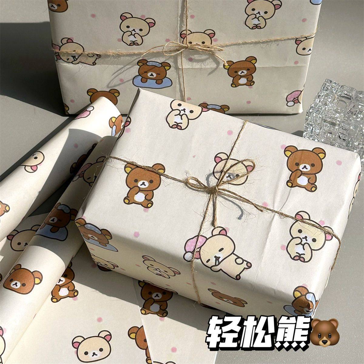 新款轻松熊ins日常礼物包装纸原创设计打包纸生日高颜值包装纸