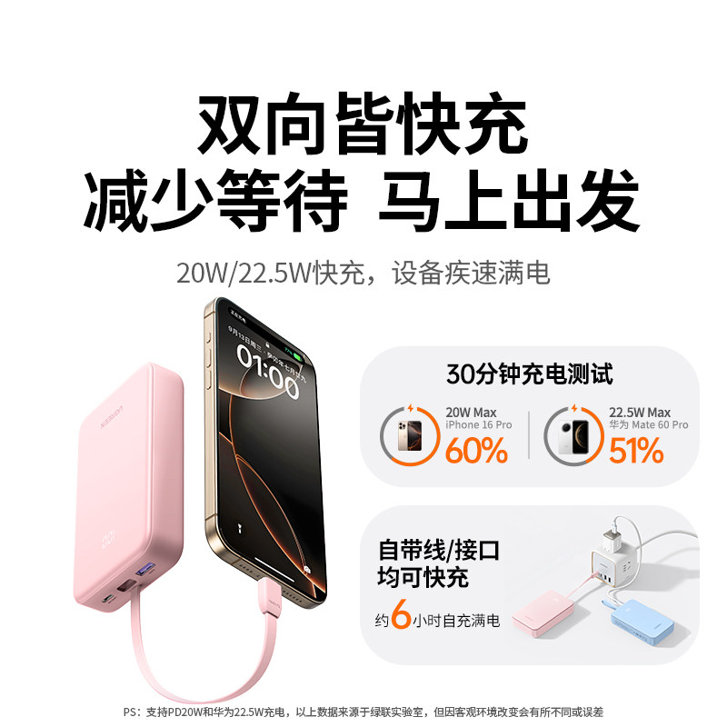 【充电宝3c认证可上飞机】倍思2025新款快充自带线小巧便携标大容量移动电源适用小米苹果17专用官方正品旗舰