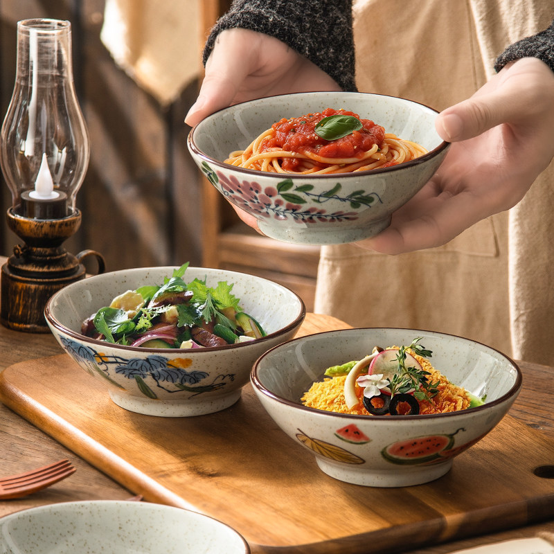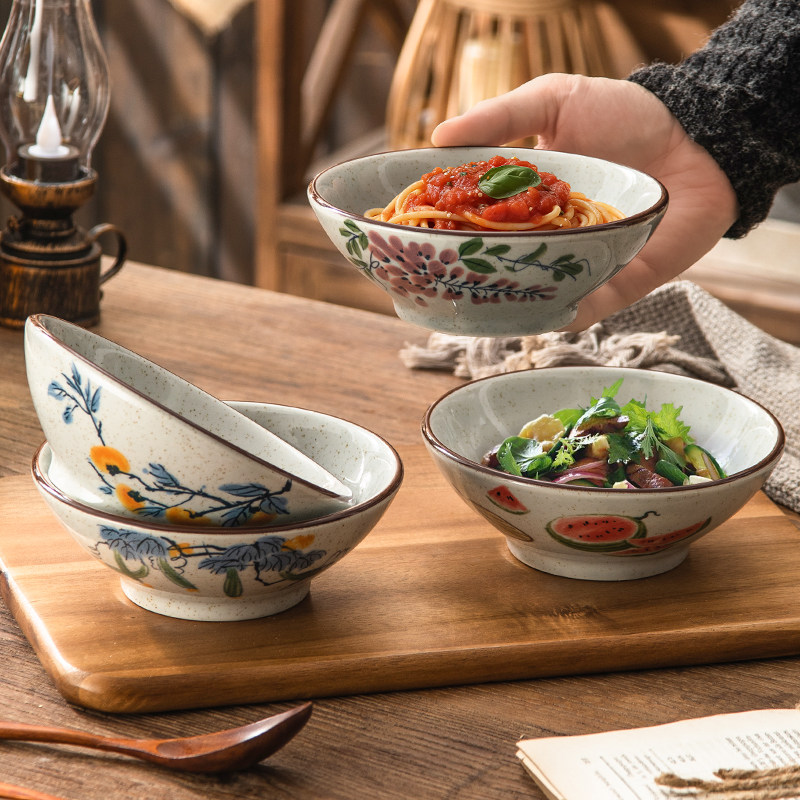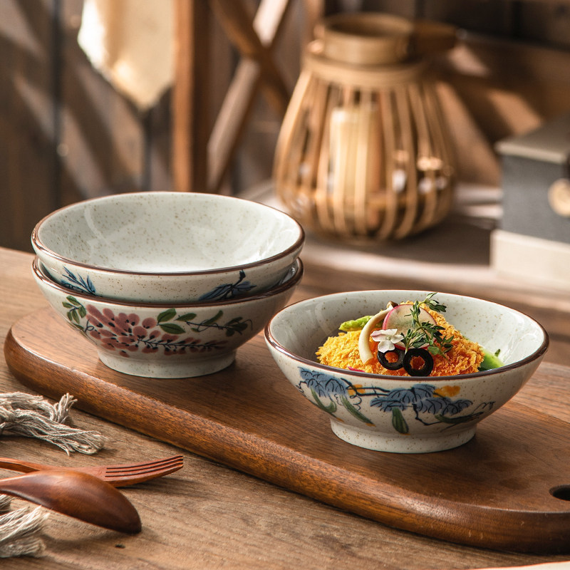 中式陶瓷高颜值怀旧复古釉下彩饭碗家用5.7英寸甜品糖水碗耐高温