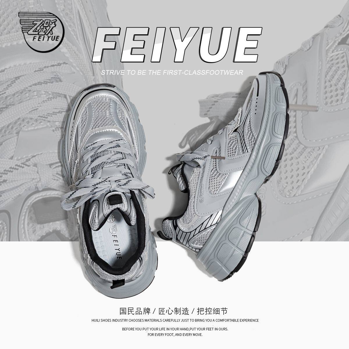 飞跃水泥灰老爹鞋男鞋新款春夏厚底增高鞋ins潮流百搭休闲运动鞋