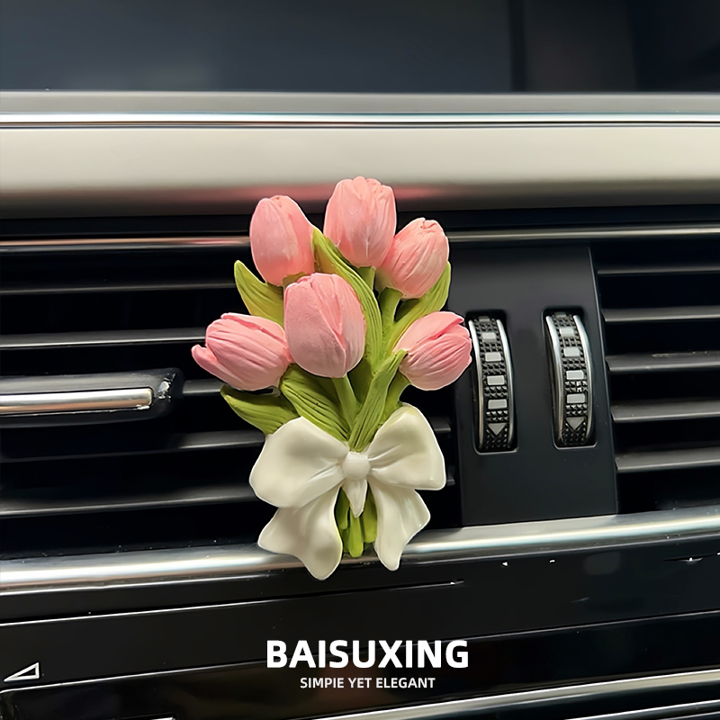 郁金香车载香薰摆件汽车出风口装饰花朵香氛扩香石女生车内装饰品