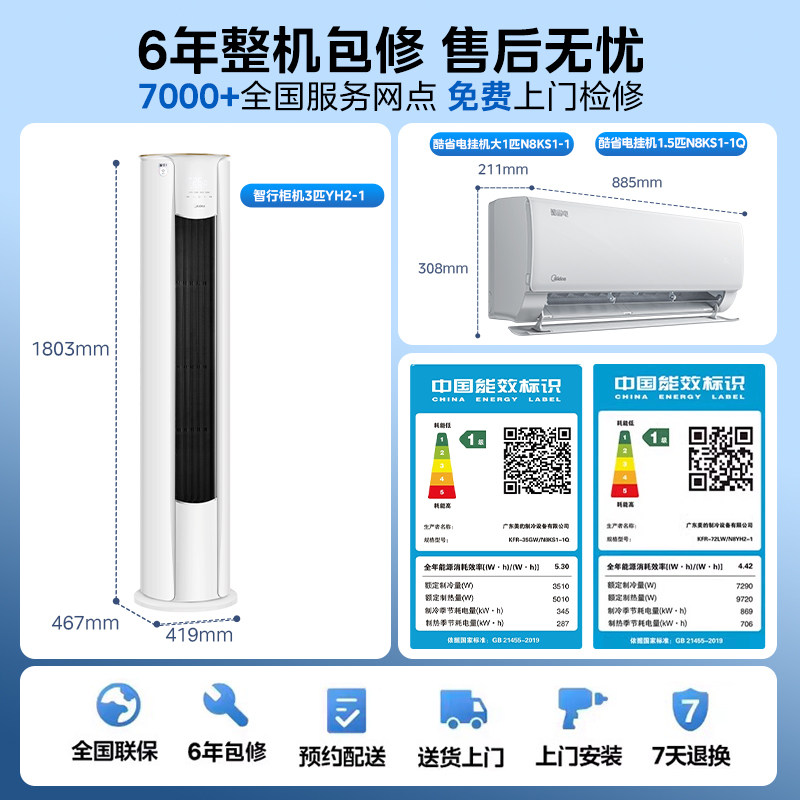 美的空调套装三室一厅组合智行酷省电柜挂一级能效变频官方旗舰店