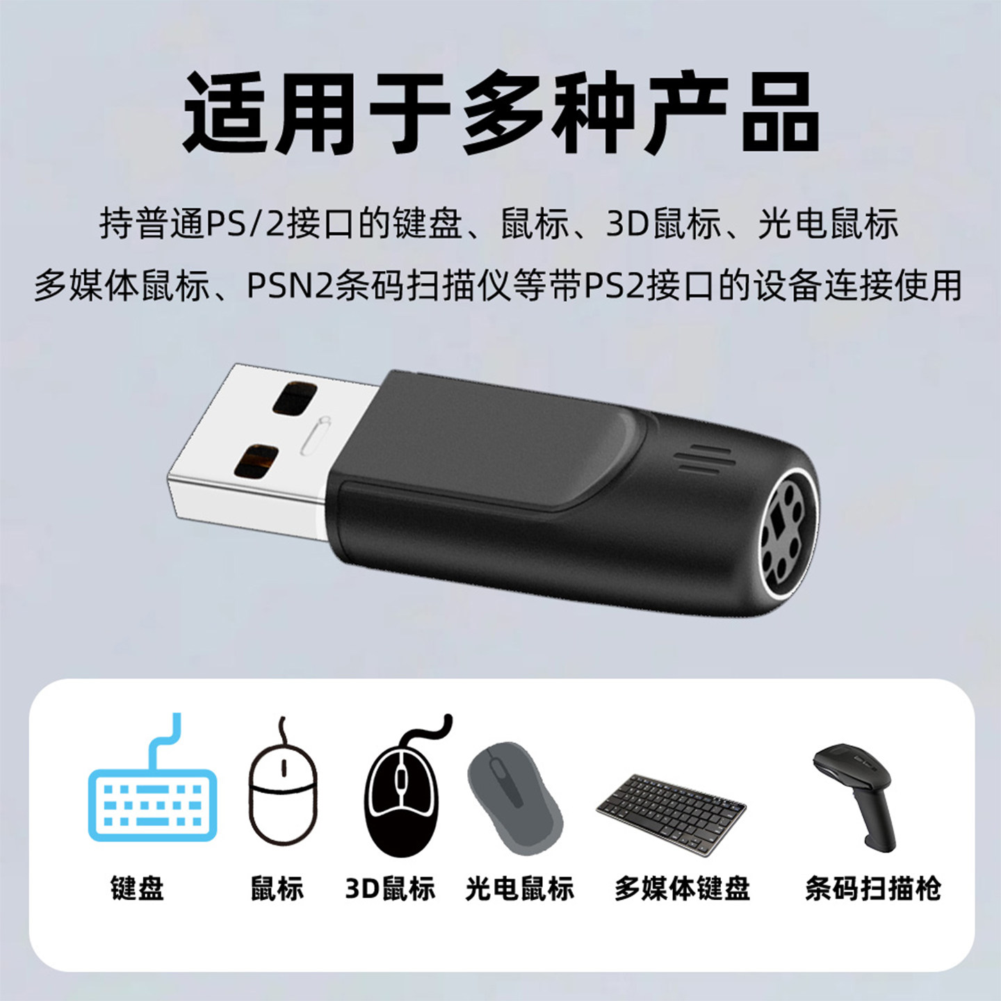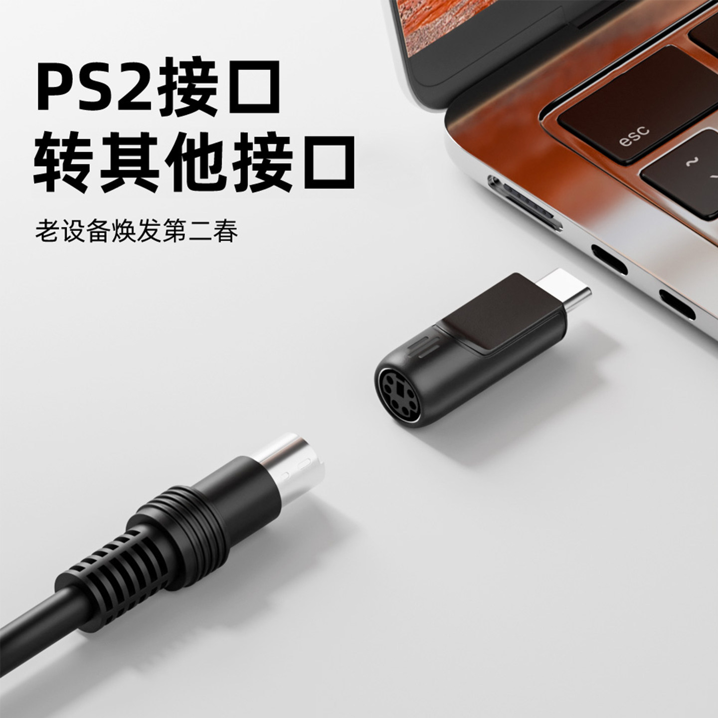 PS2转USB转接头老式台式电脑主机圆口圆头键盘鼠标转换接头线typec接口笔记本转ps2转换器连接老款光电扫描枪