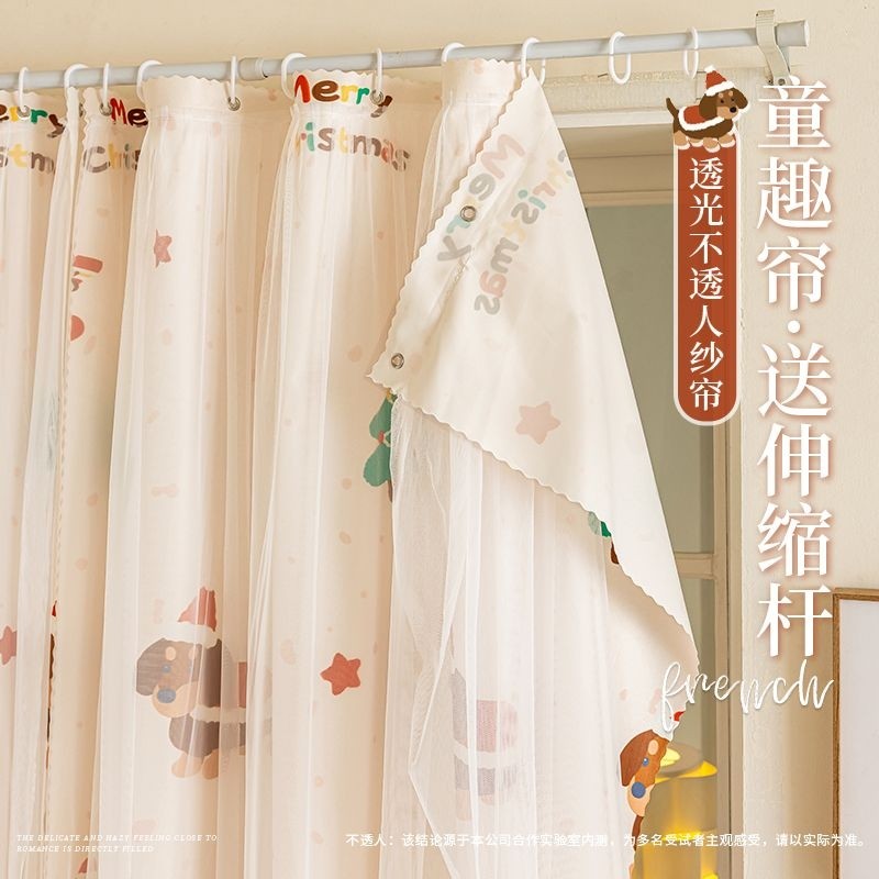 窗帘童趣带纱遮挡帘小窗户卧室简易帘出租屋隔断帘儿童房卧室门帘