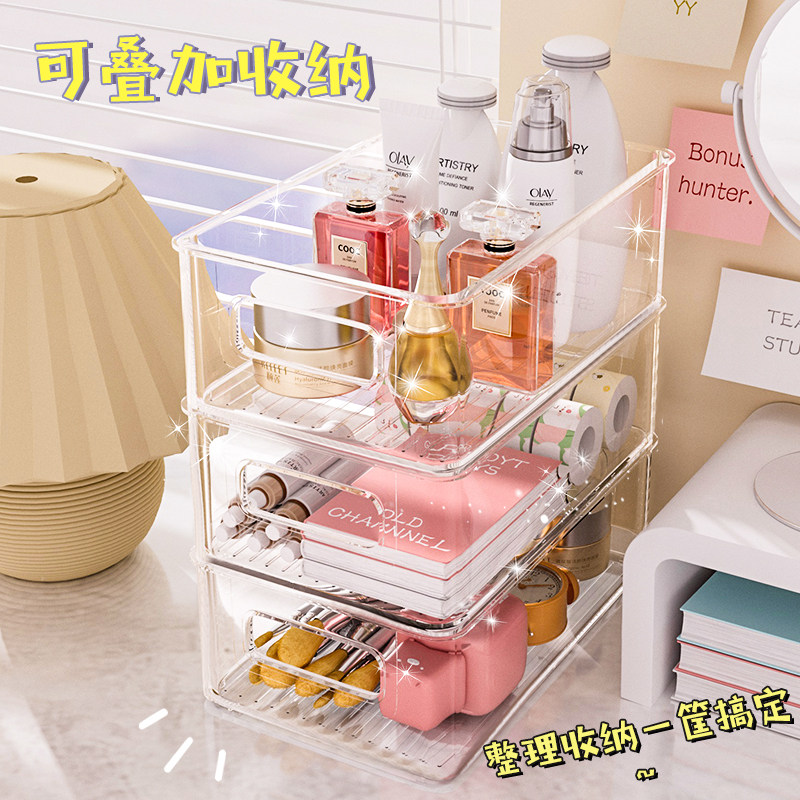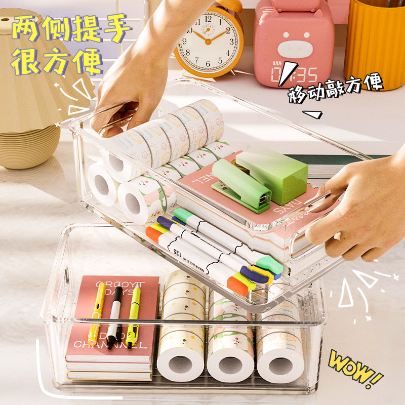 桌面收纳盒亚克力化妆品零食透明筐护肤品面膜宿舍整理杂物置物架