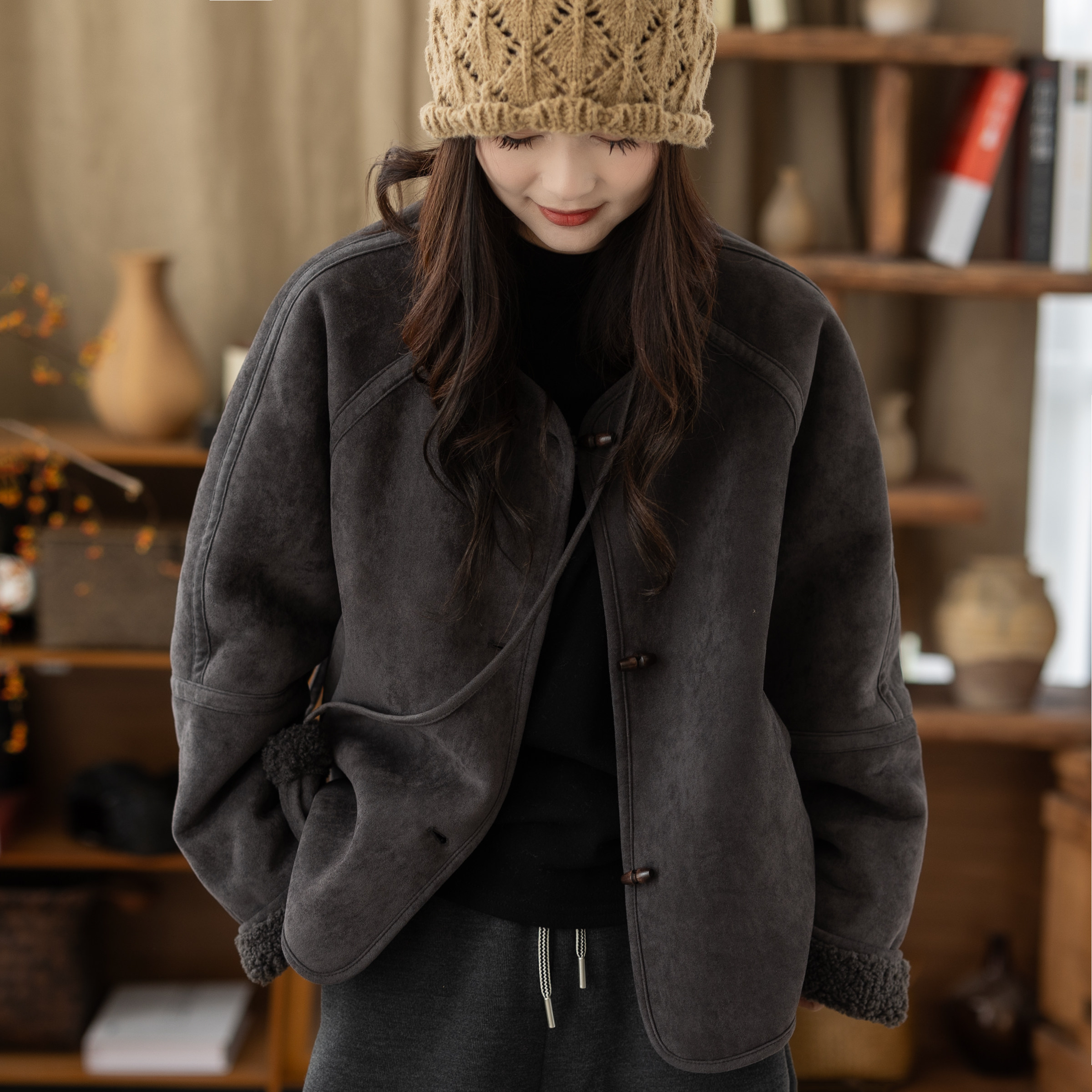 蕉下软壳万粒绒外套女秋冬新款双面穿摇粒绒抓绒内胆防风加绒外套