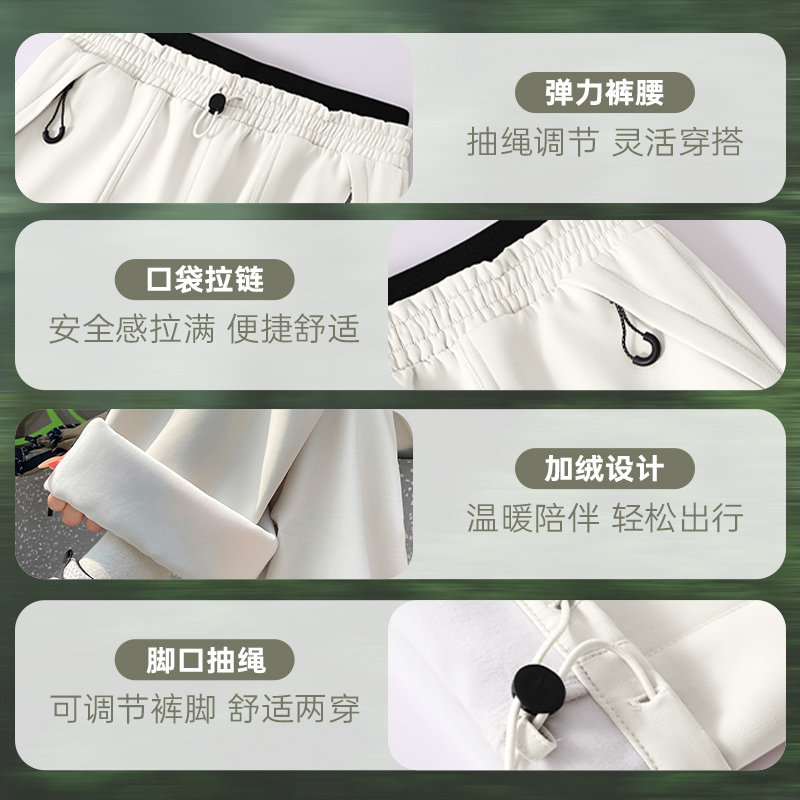 SIINSIIN加绒卫裤女2025新款阔腿运动裤休闲长裤冬季白色直筒裤子