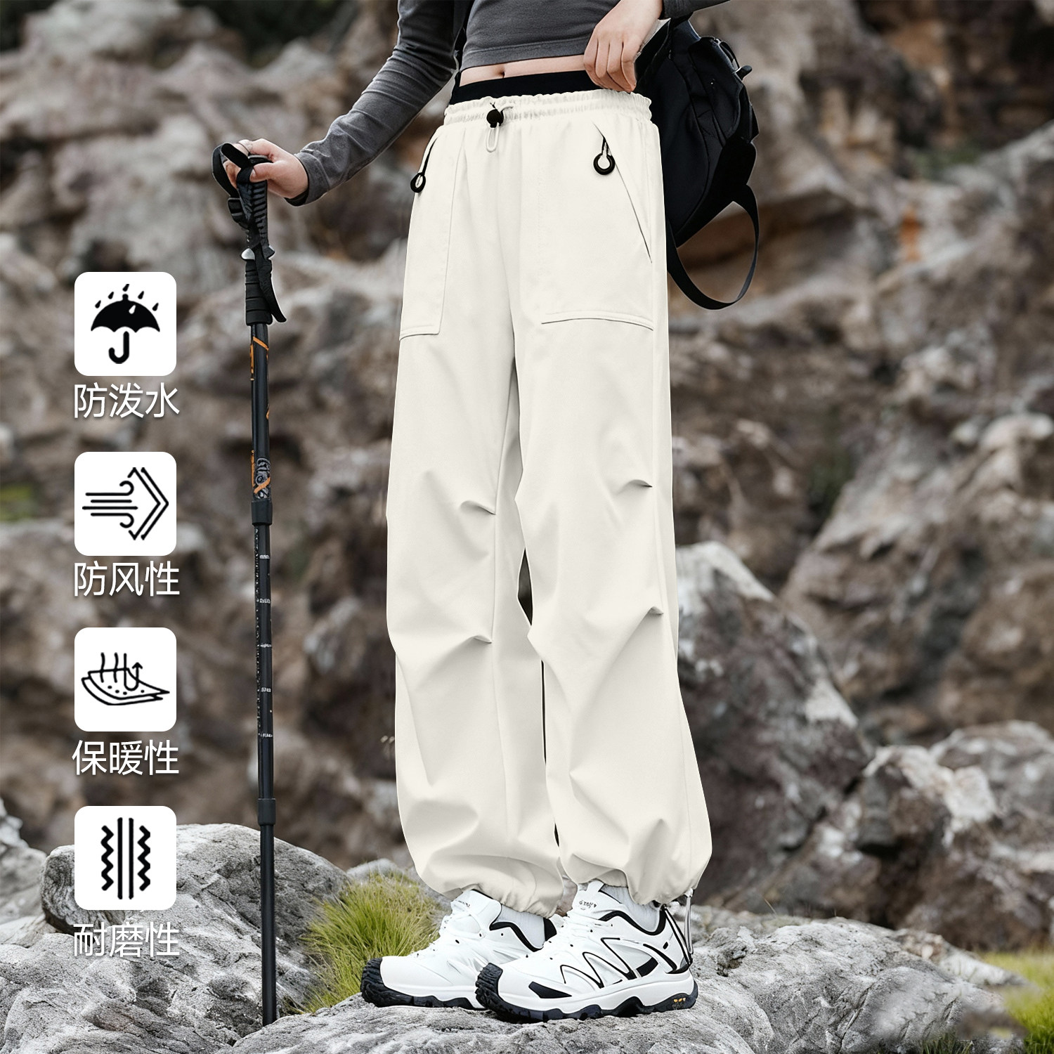 蕉下暴走工装裤女秋冬新款加绒伞兵裤户外防风运动裤速干登山裤子