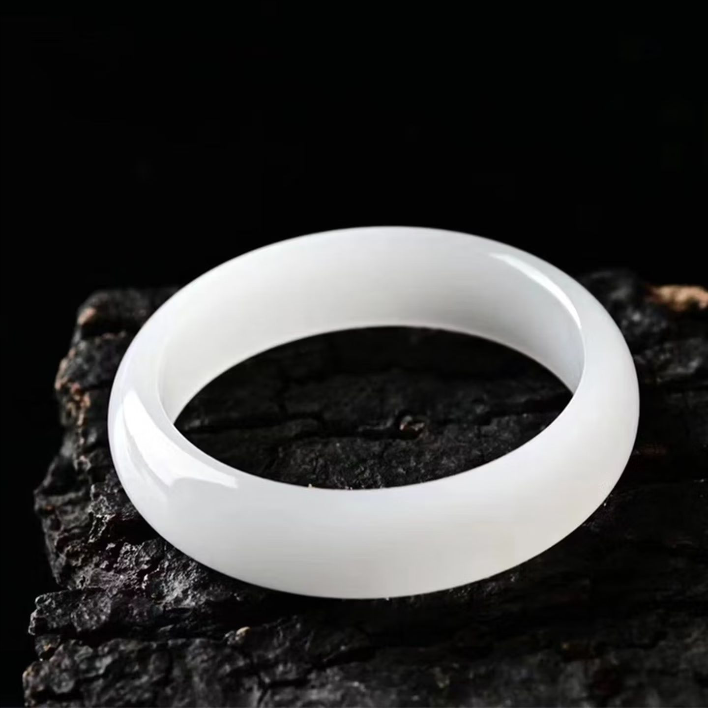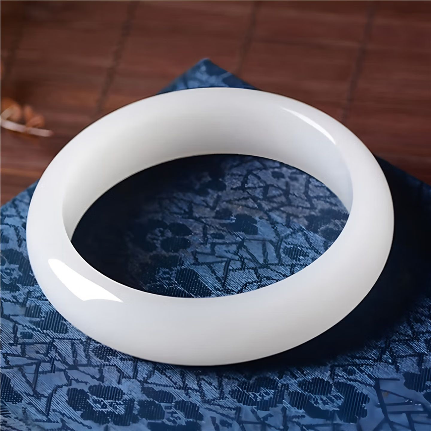 正品新疆白玉手镯国风少女真玉石镯子金丝白玉送妈妈礼物平安镯
