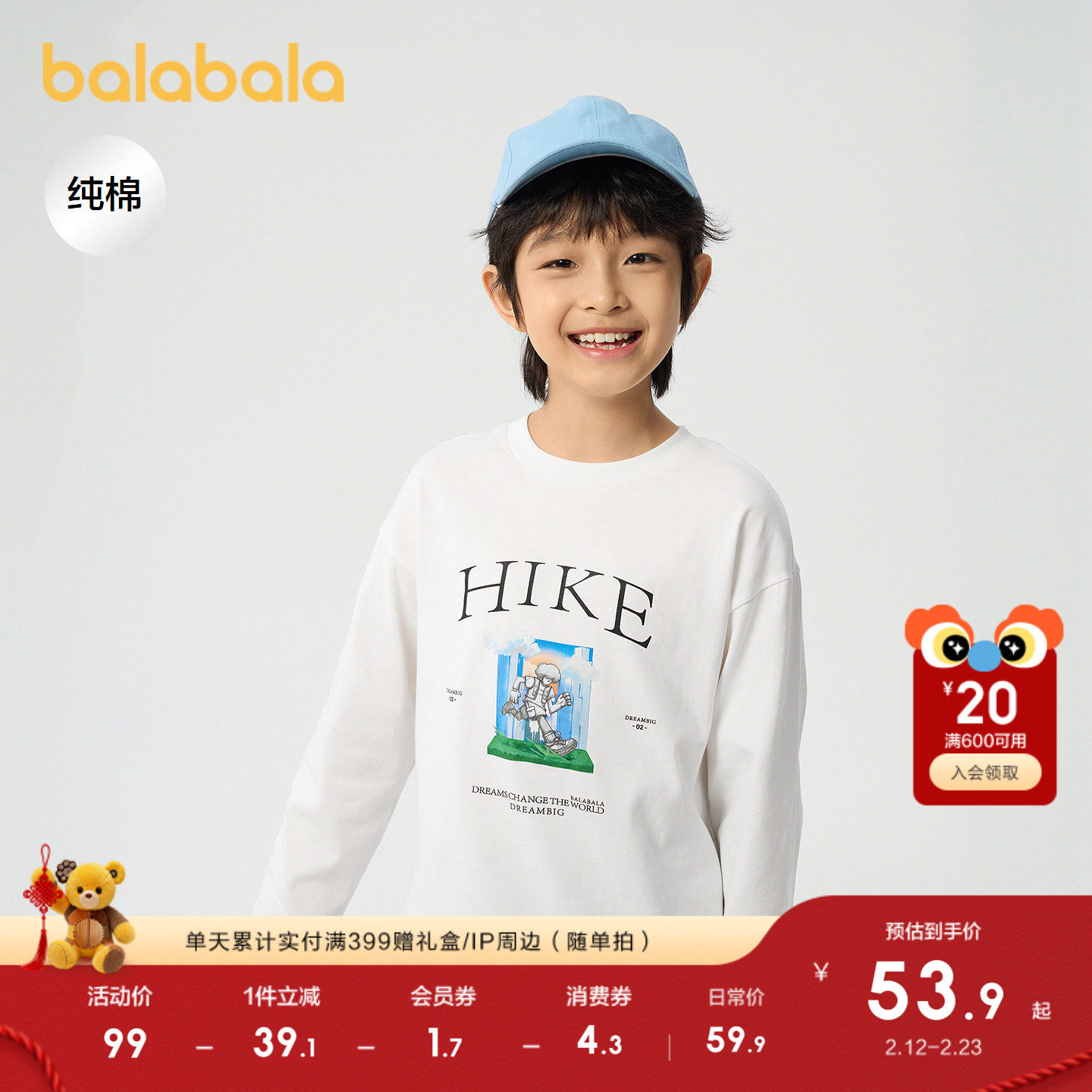 真维斯童装男童长袖t恤春秋款儿童秋季打底衫女大童白色纯棉秋衣