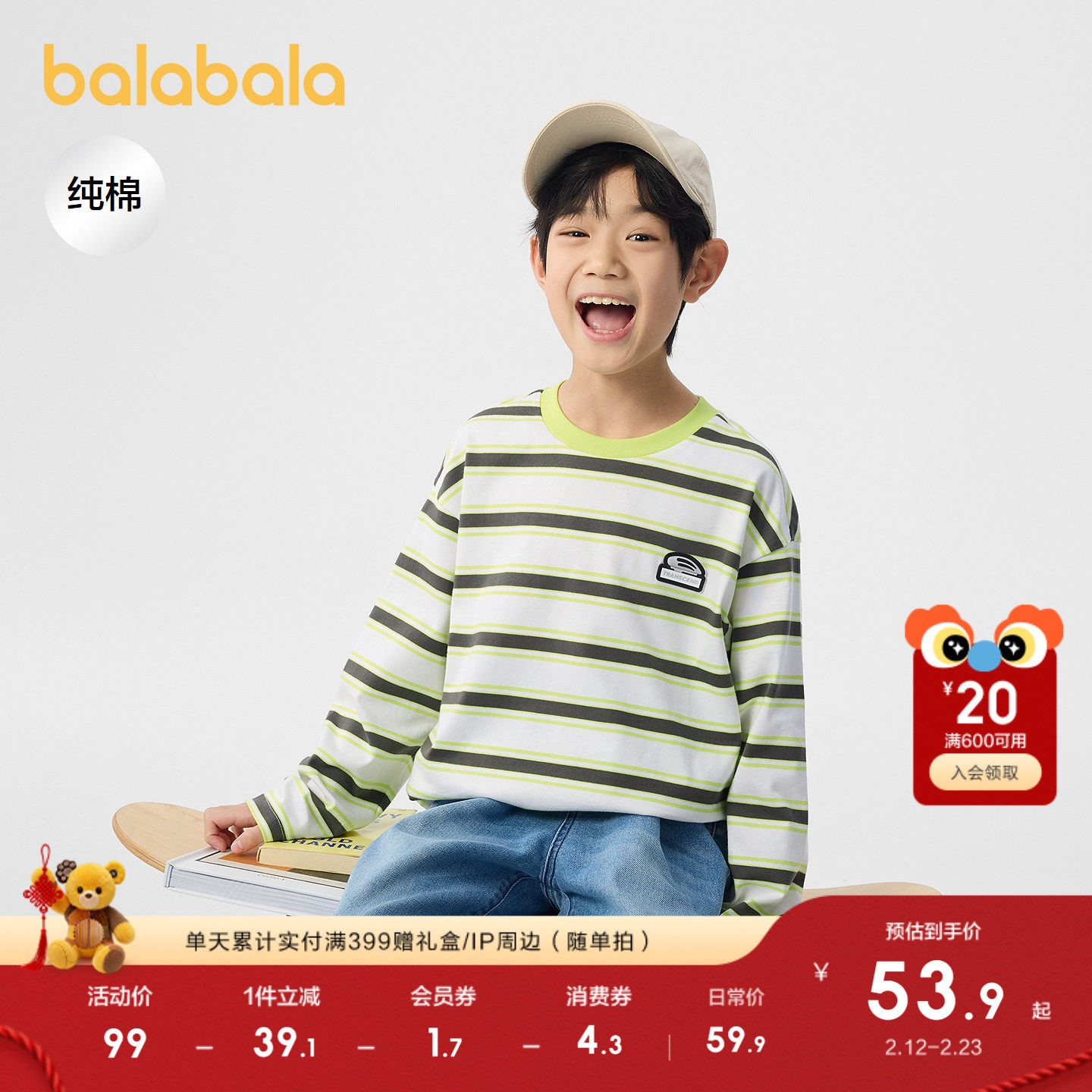 巴拉巴拉童装男童t恤儿童春装长袖上衣条纹针织内搭户外时尚百搭