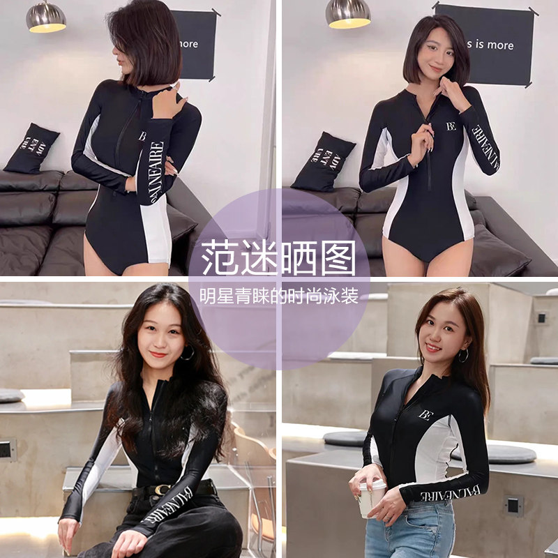 【哈妮克孜同款】BE范德安冲浪系列连体泳衣女士长袖竞速保守遮肉