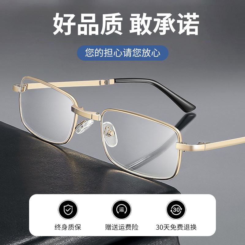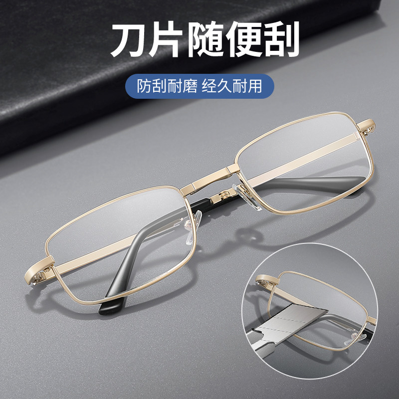 高清玻璃老花眼镜男款便携金属折叠水晶镜片中老年老光眼睛护目女