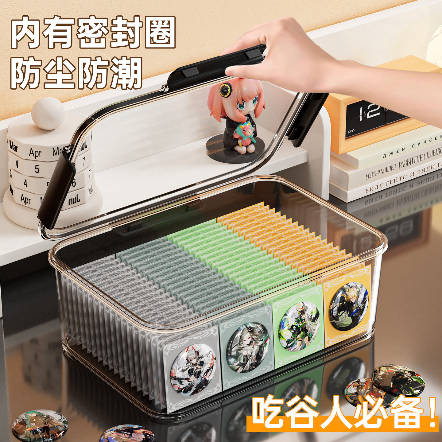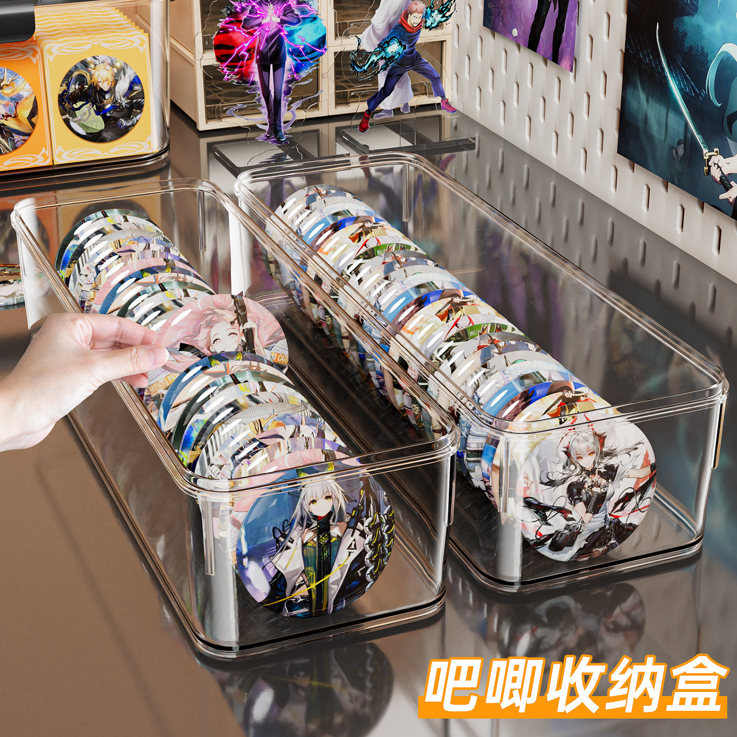 吧唧收纳盒亚克力透明带盖密封防潮徽章动漫周边谷子桌面防尘盒子