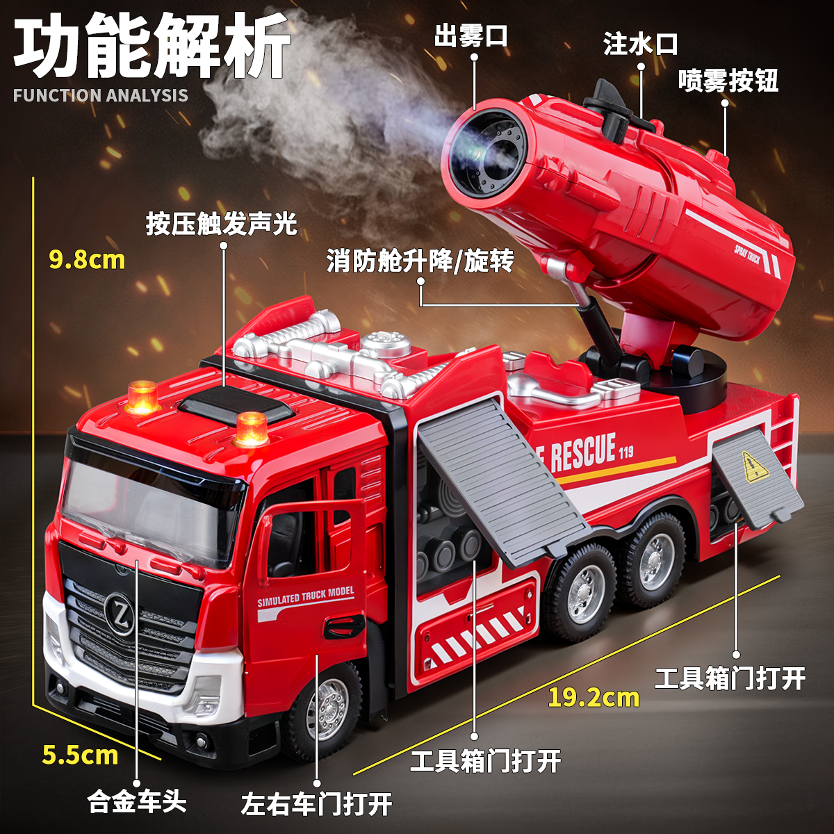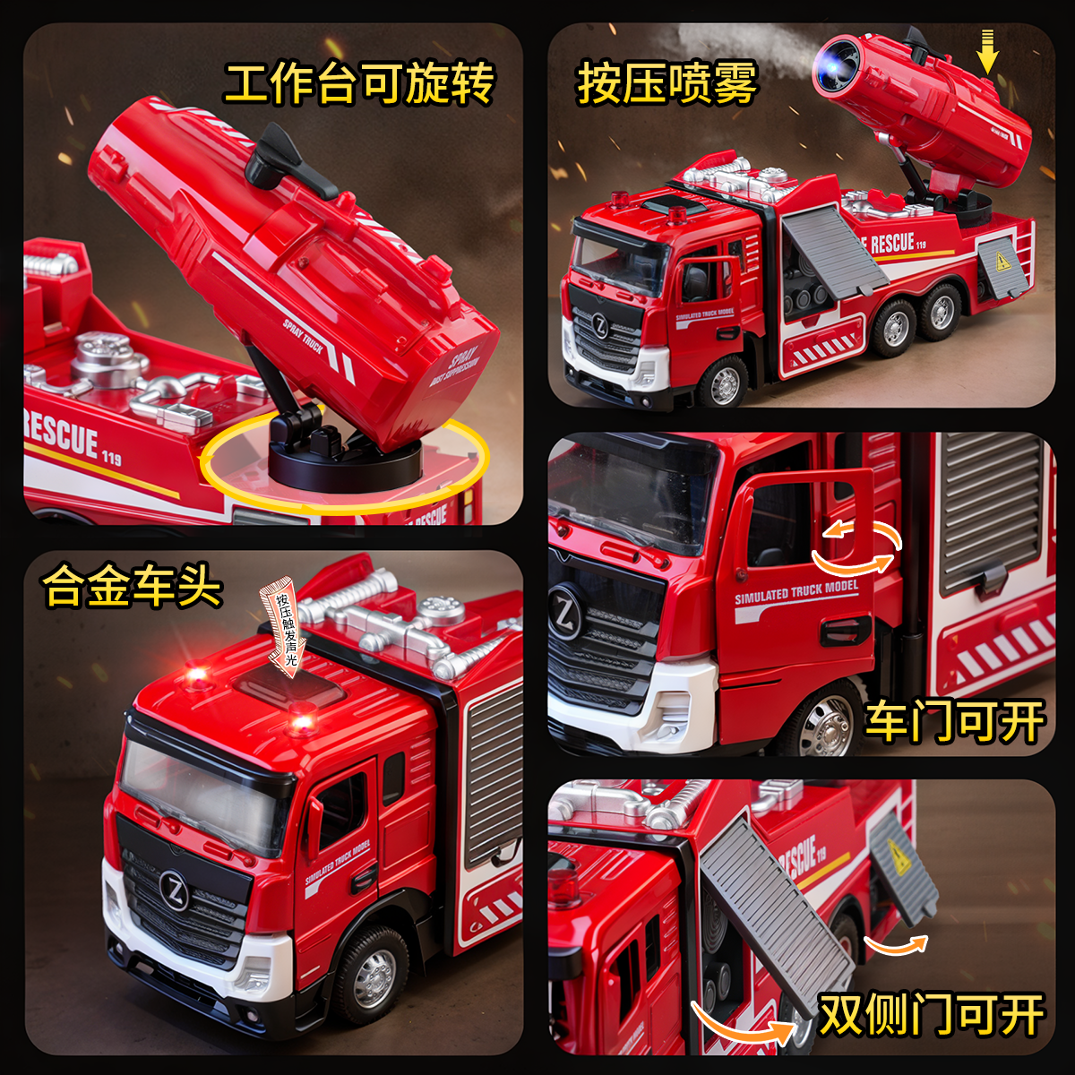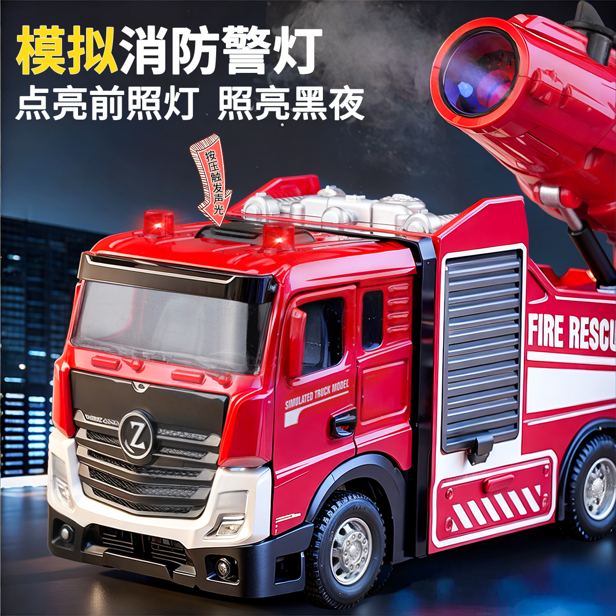 儿童大号消防车玩具车男孩合金可喷水洒水车云梯车消防员救援车