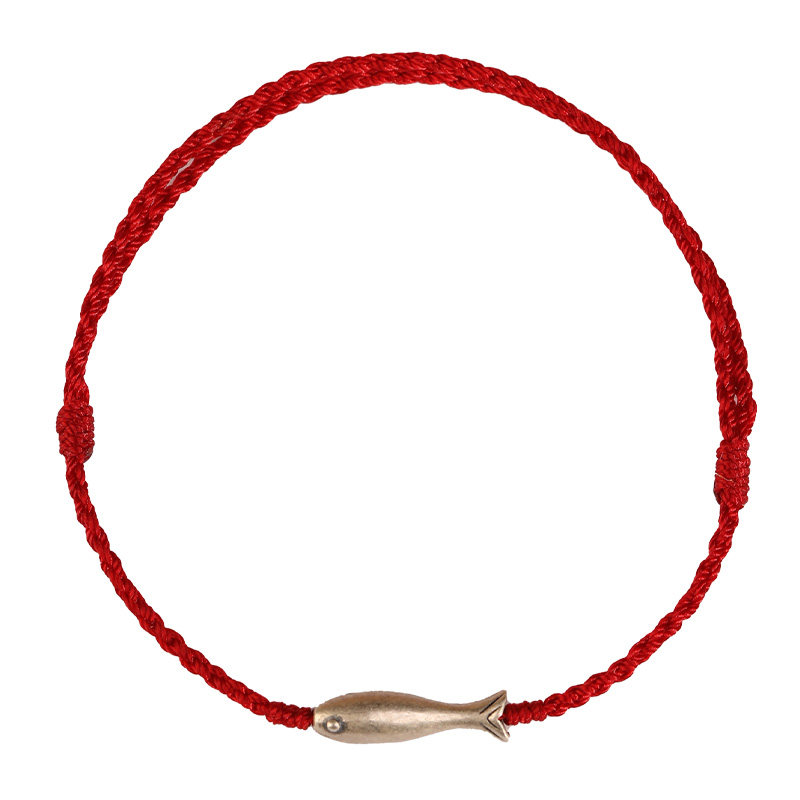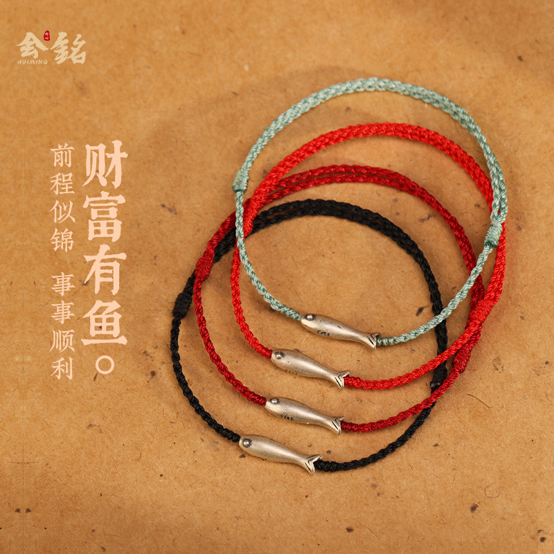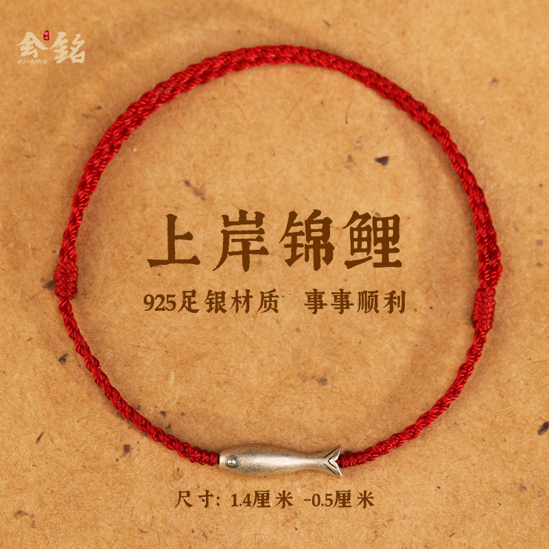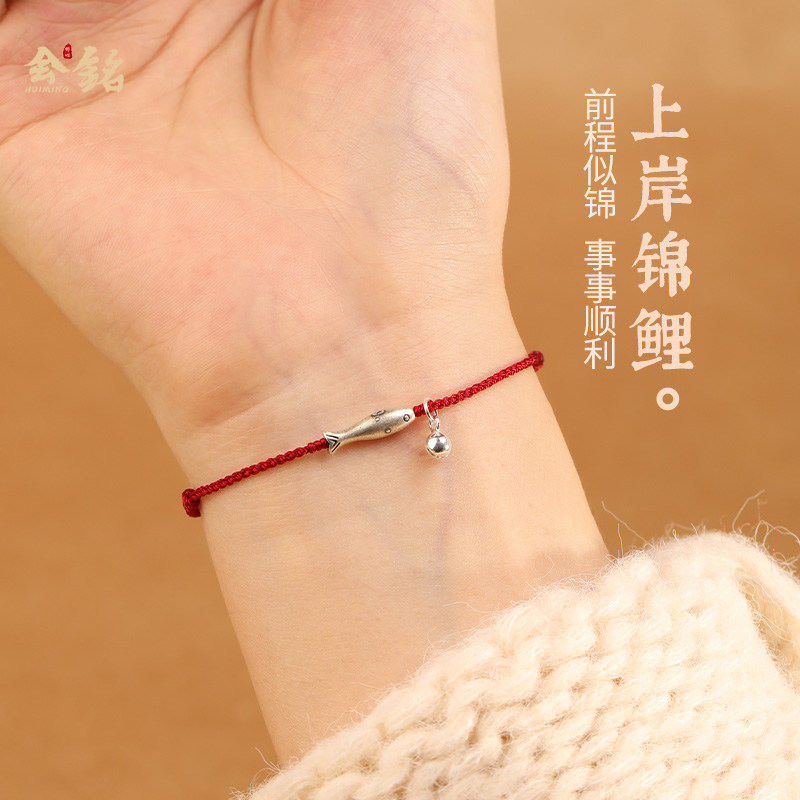 925银锦鲤铃铛红绳脚链女精致编织本命年好运脚绳男上岸小手链