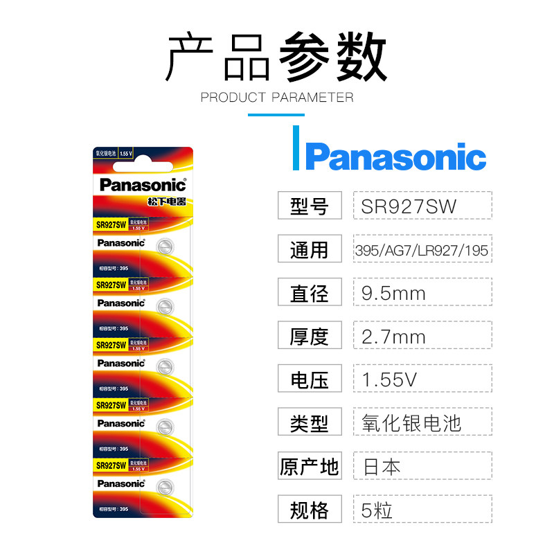 松下395手表电池SR927SW/W适用于卡西欧G-SHOCK世腾天梭精工阿玛尼天王通用AG7型号LR927电子399日本进口