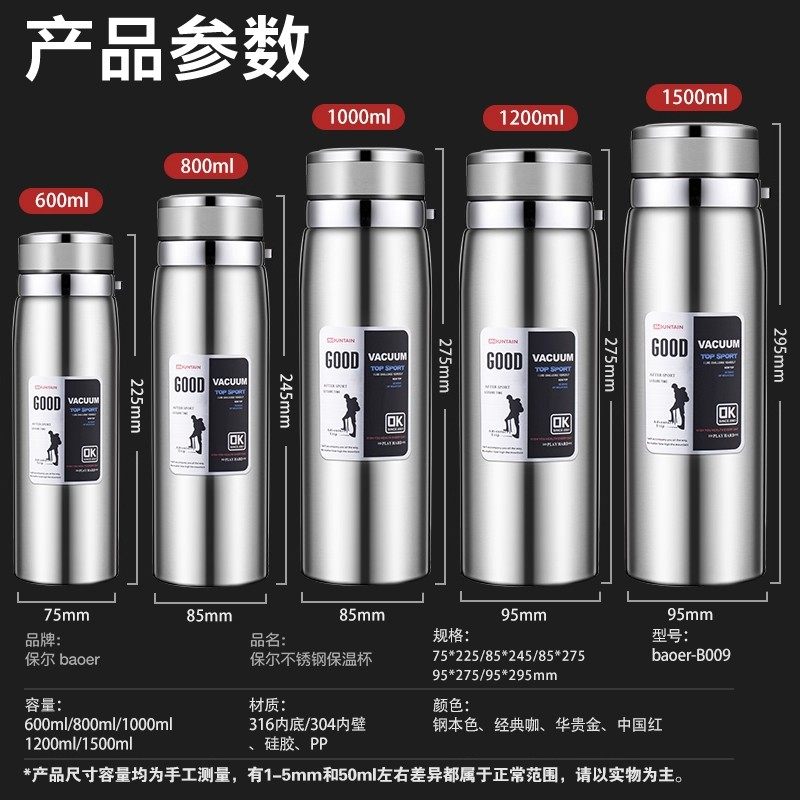 保温杯316不锈钢保温杯男女高档水杯子大容量便携户外运动水壶