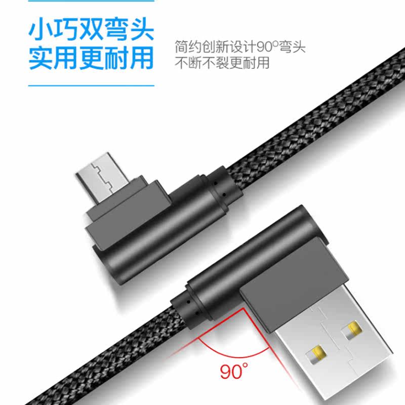 双弯头安卓手机数据线Micro适用于华为VIVO小米oppo红米快充1米充电