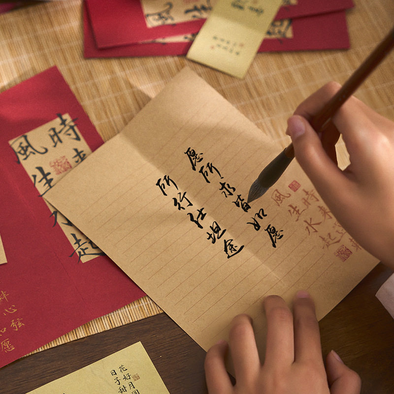 信纸信封套装高级感学生写信稿纸牛皮纸生日贺卡新年祝福卡片中国风书信古风信笺表白礼物送男友女友人间祈愿