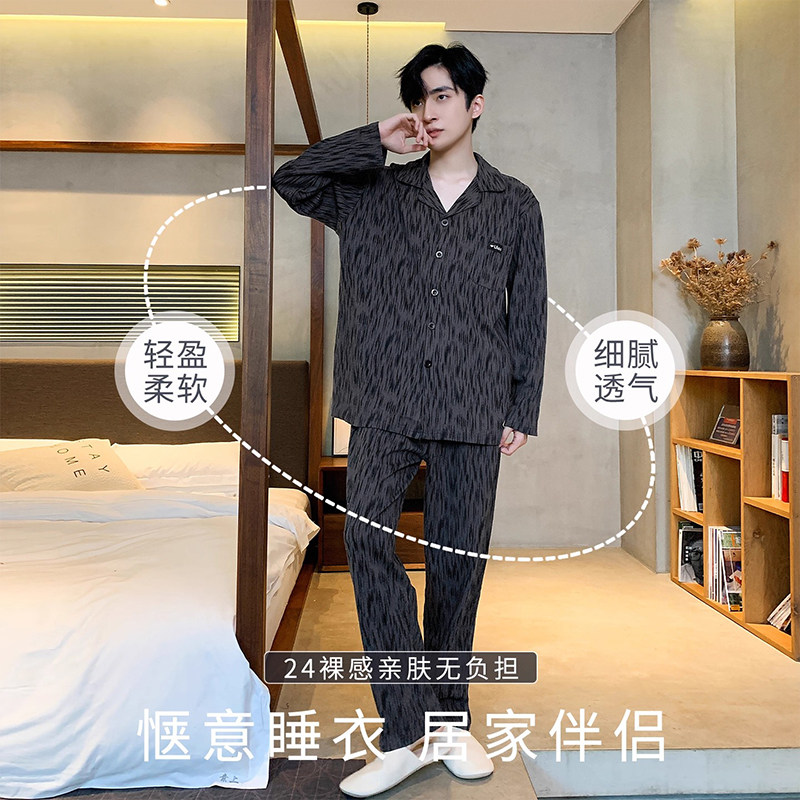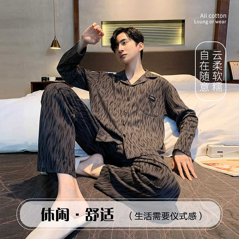 2025新款睡衣男士棉质长袖春秋季冬天青少年男式可外穿家居服套装