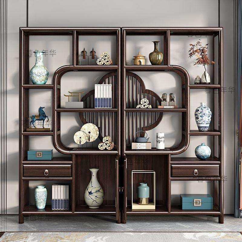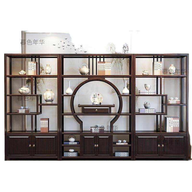 新中式一整套博古架实木加厚多宝阁陈列置物架办公室茶室展示柜