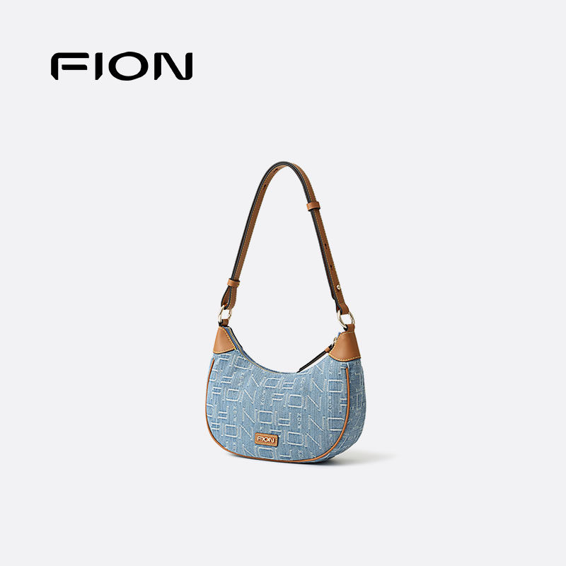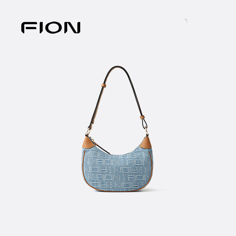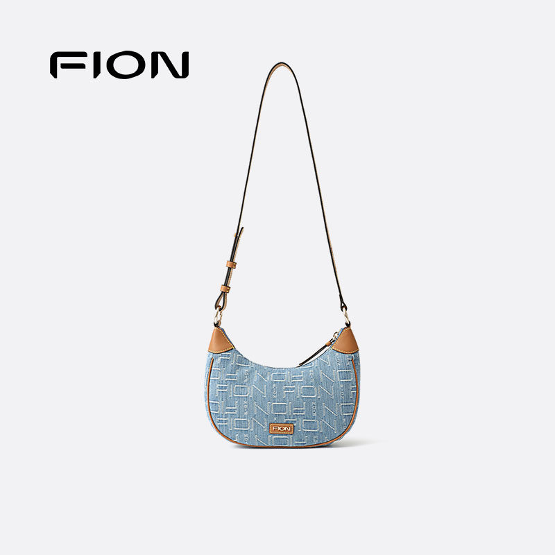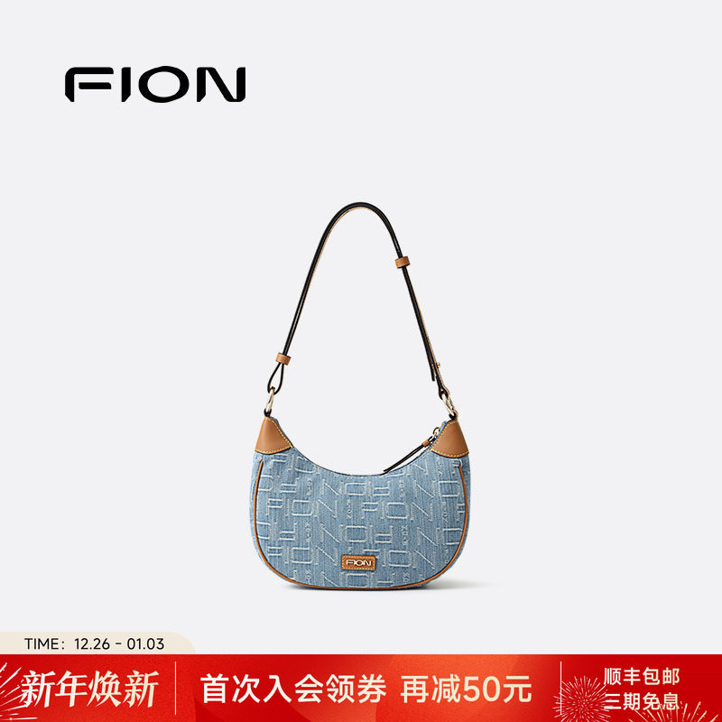 Fion/菲安妮女包2025新款单肩腋下包休闲百搭月牙包斜挎包牛仔包
