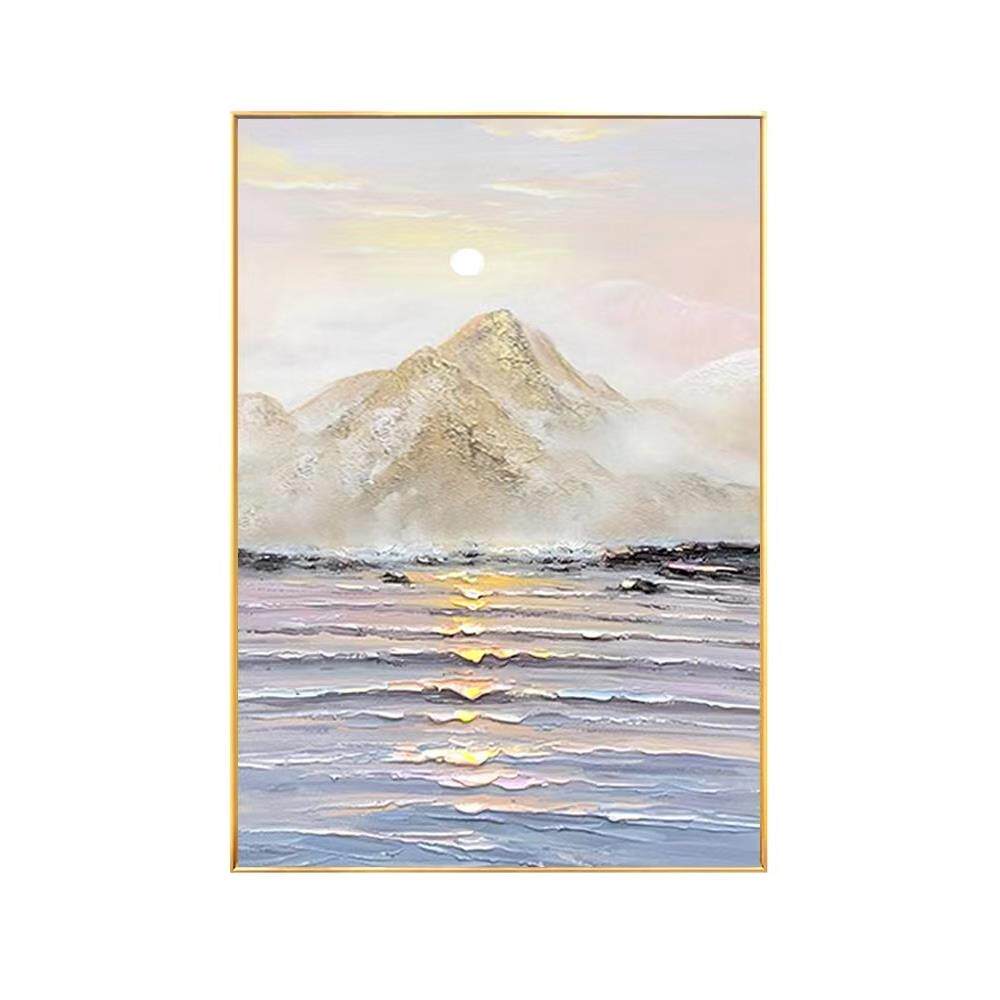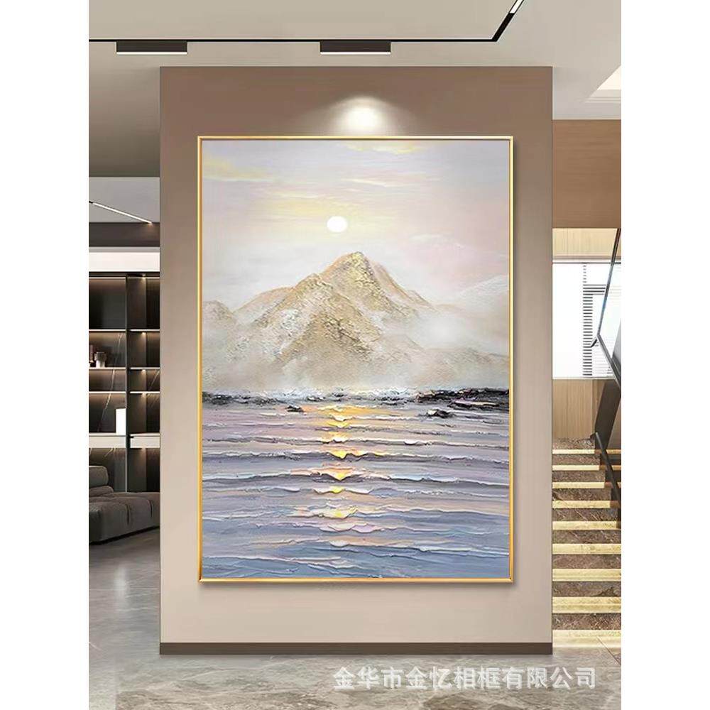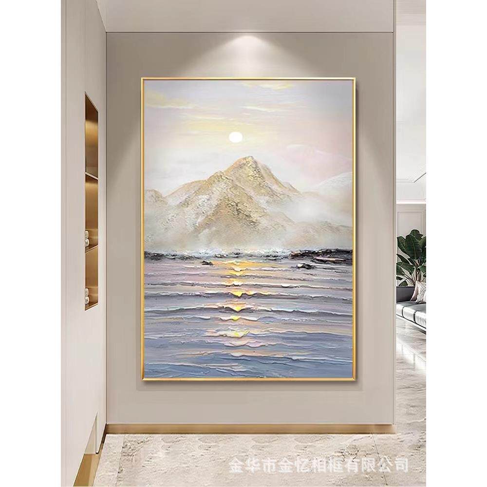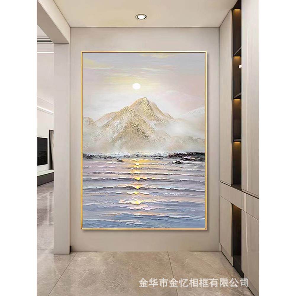 纯手绘海景立体肌理装饰画玄关竖款油画现代简约抽象挂画落地画