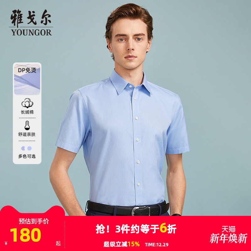 【人字纹DP免烫】雅戈尔官方男士夏季商务休闲纯棉舒适短袖衬衫