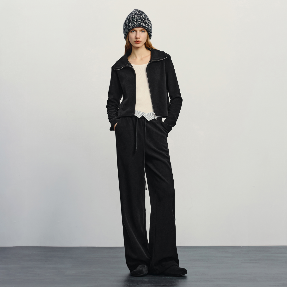 HAVVA休闲高领卫衣外套阔腿长裤套装女加厚两件套2026春季Z3-3350