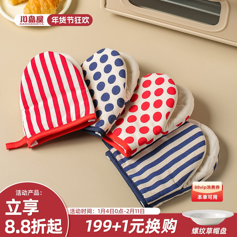 川岛屋厨房隔热手套耐高温加厚防烫套家用烤箱微波炉专用烘焙手套
