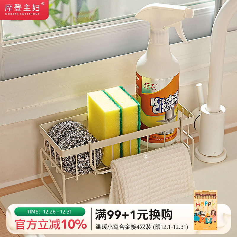 摩登主妇抹布沥水架厨房家用不锈钢海绵水龙头洗碗水槽收纳置物架
