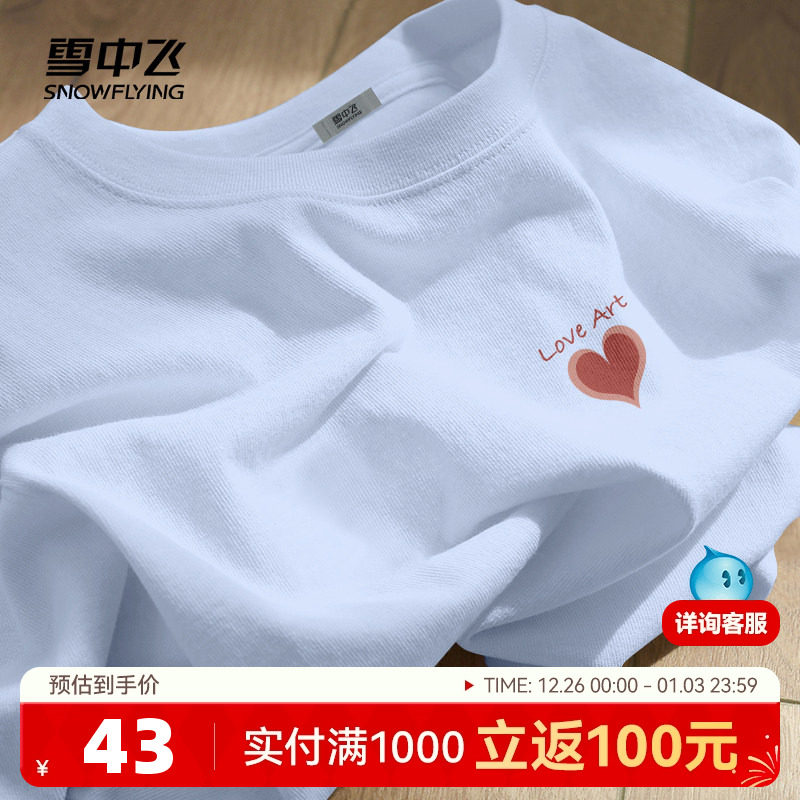 雪中飞纯棉短袖女t恤夏季2025新款小个子韩版宽松正肩半袖上衣PC