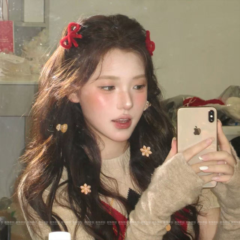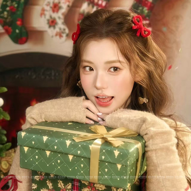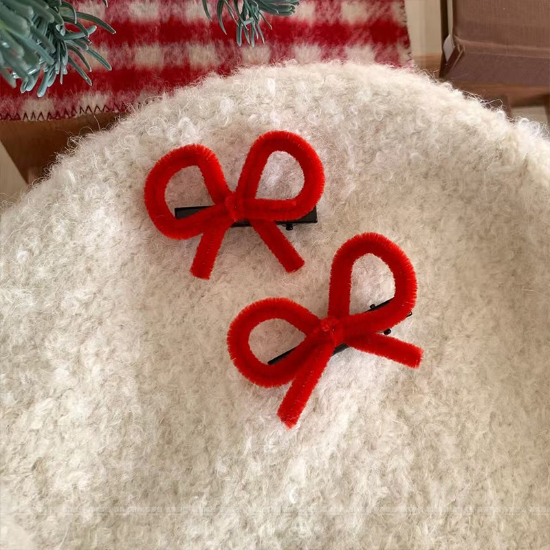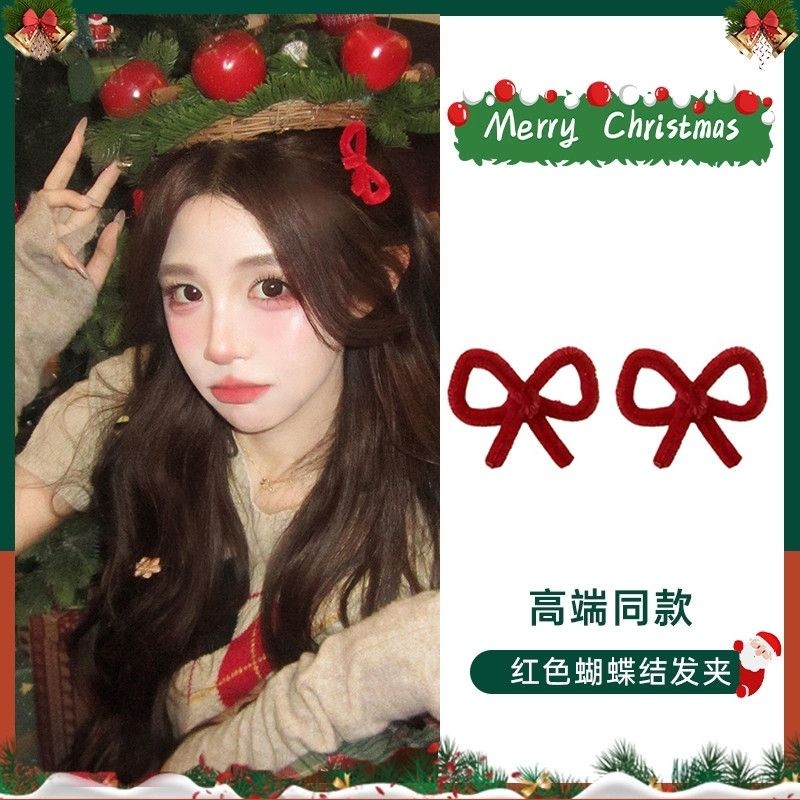 可爱圣诞节红色毛绒蝴蝶结发夹女刘海夹子氛围感拍照头饰新年固定