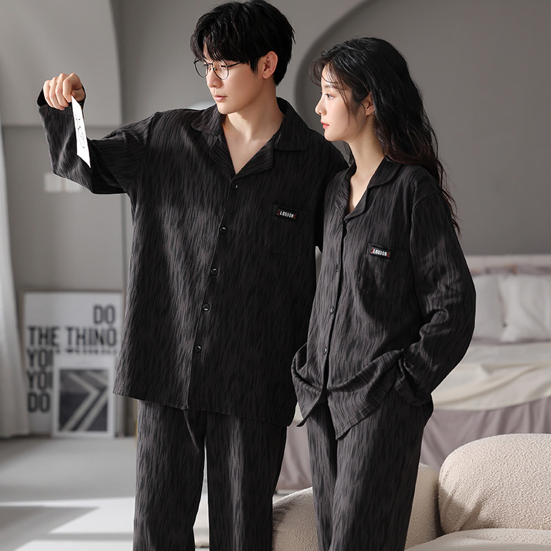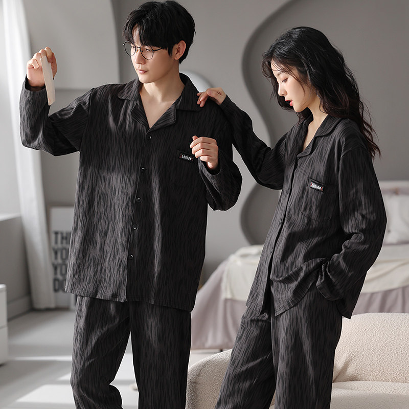 安比斯情侣睡衣舒适纯棉秋季女长袖男女同款休闲家居服套装可出门