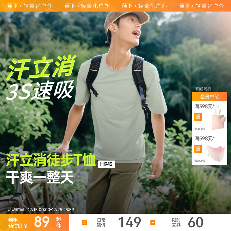 蕉下暴汗速干t恤男凉感透气轻薄训练服户外徒步登山攀岩运动短袖