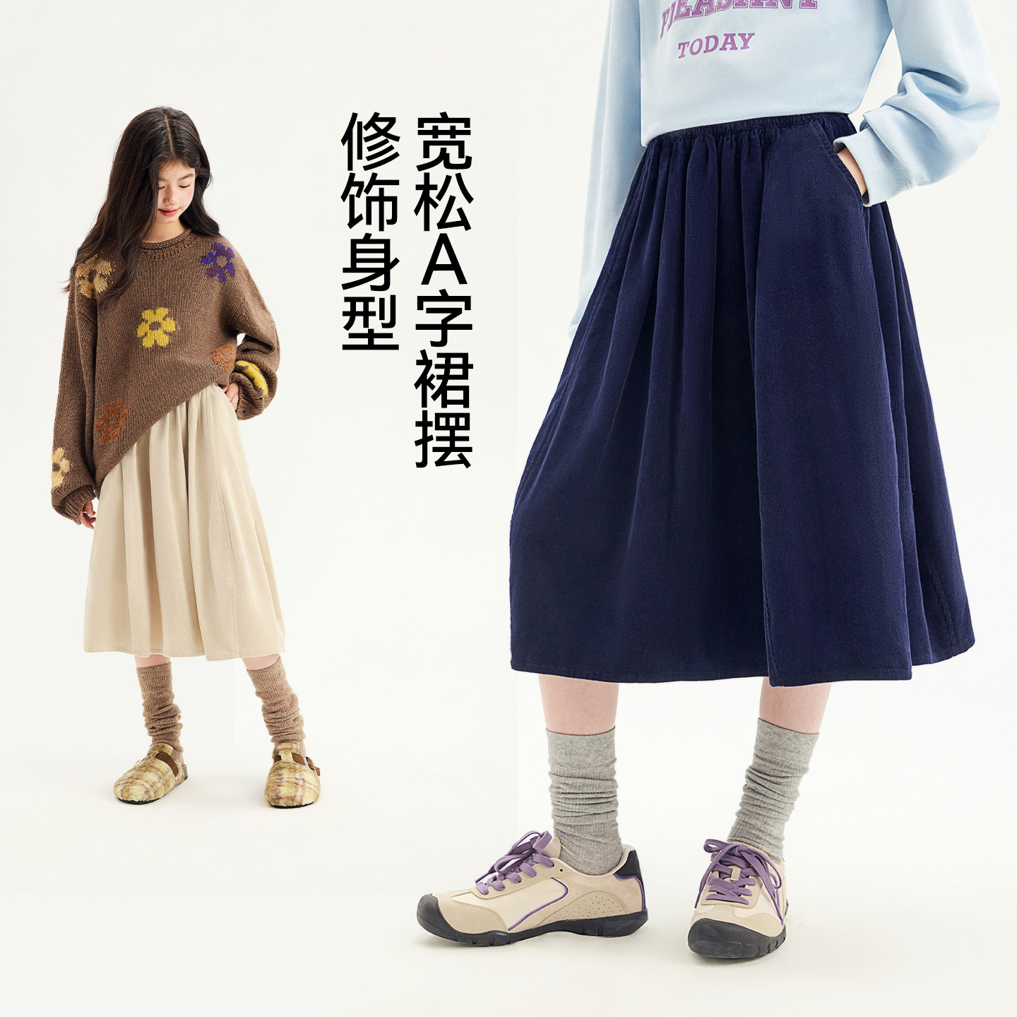 女童半身裙2025新款儿童裙子中大童女孩春秋款百搭长裙子灯芯绒