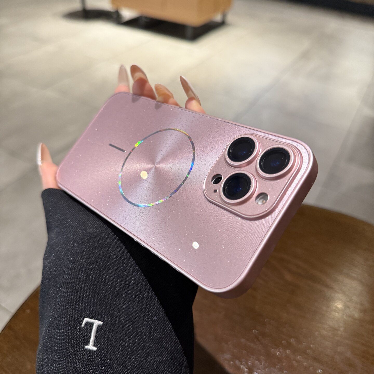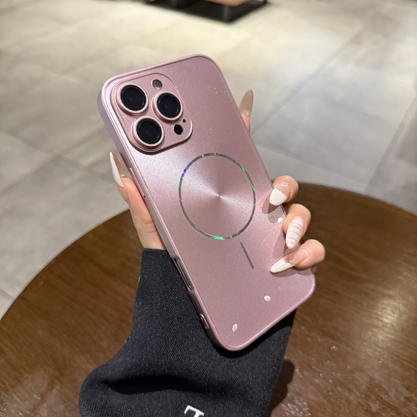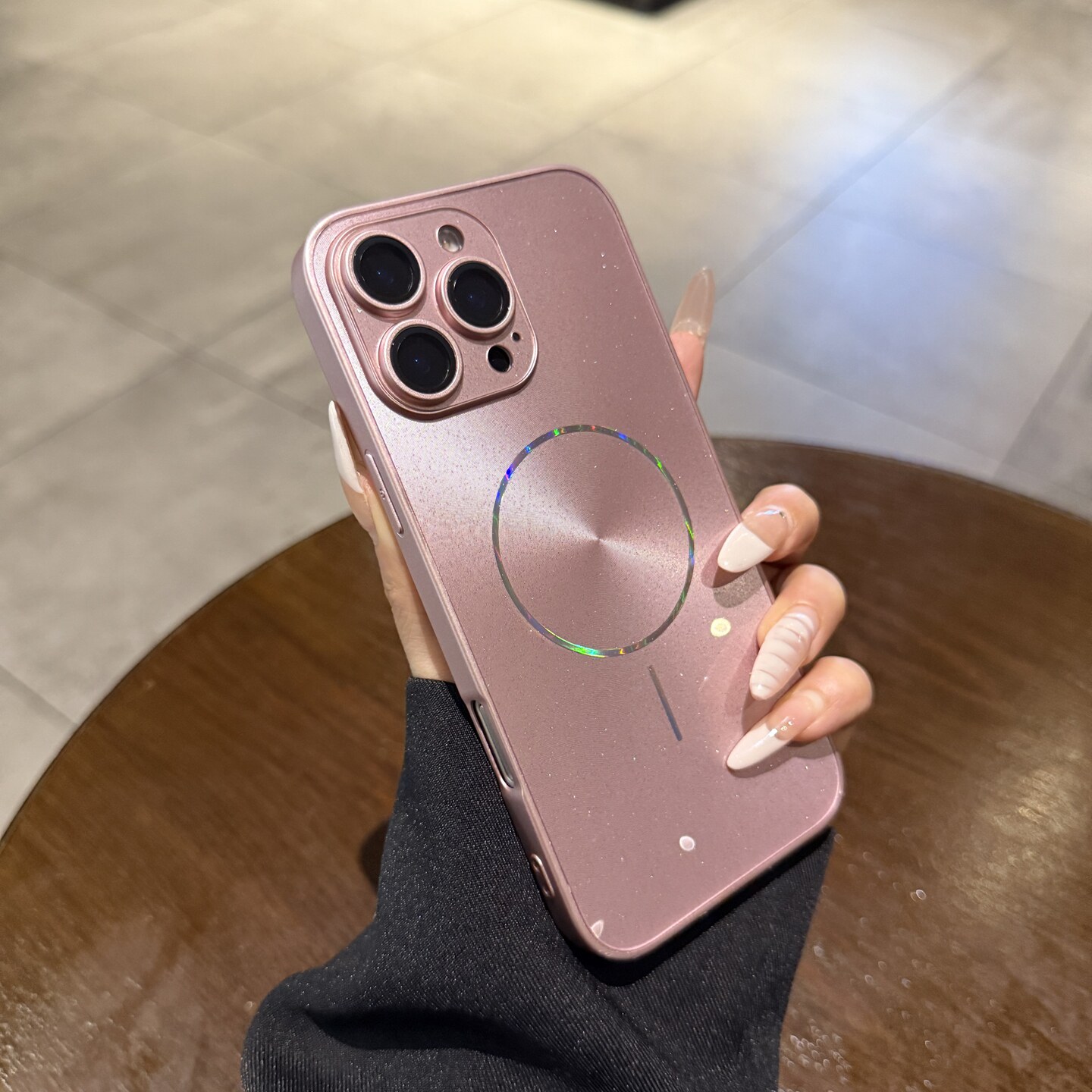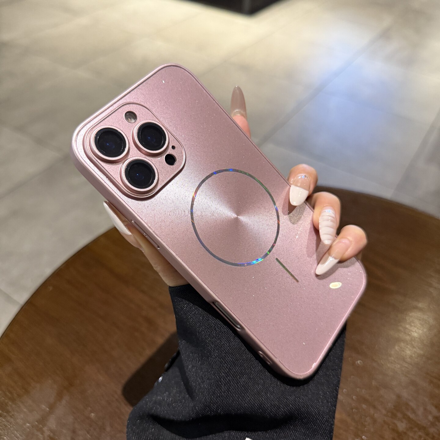 冰莓粉镭射极光CD纹适用苹果16pro手机壳磁吸iphone15新款14promax全包镜头膜12高级13闪粉11女Magsafe保护套
