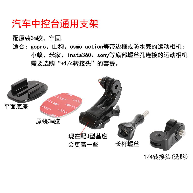 适用gopro13/12/9小蚁/山狗/大疆运动相机汽车中控台固定支架配件