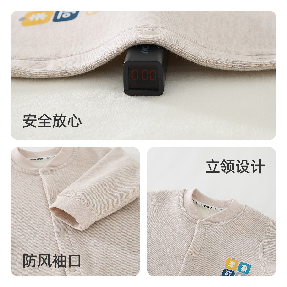 婧麒婴儿衣服秋冬德绒连体衣男女宝宝发热保暖新生儿打底睡衣冬款