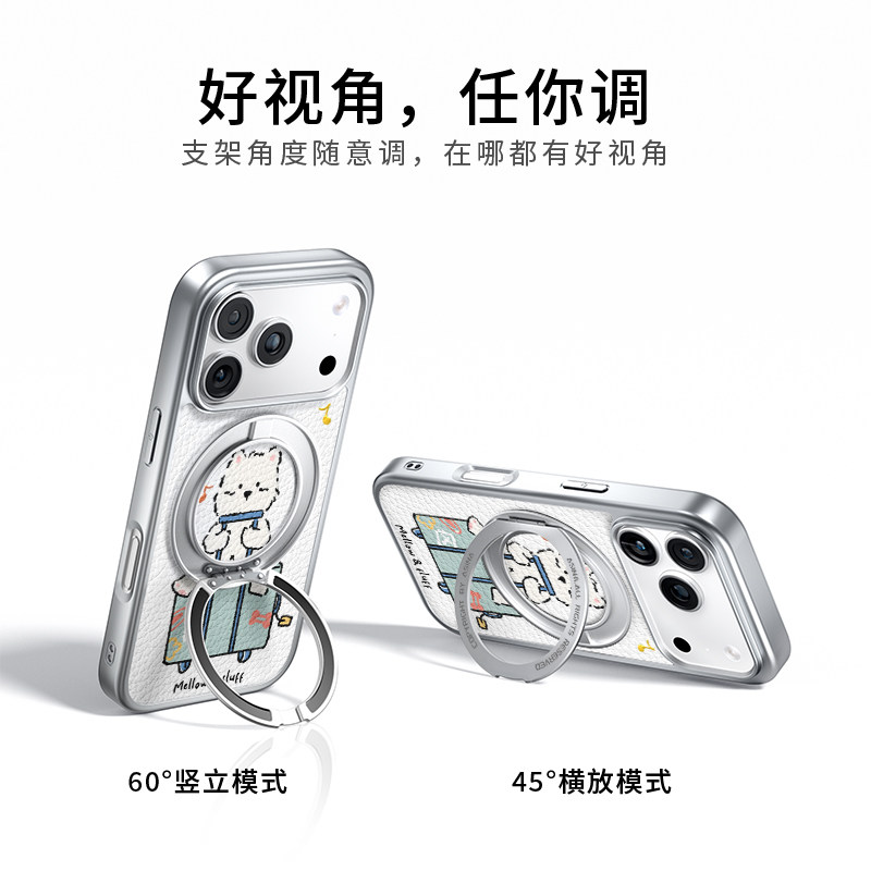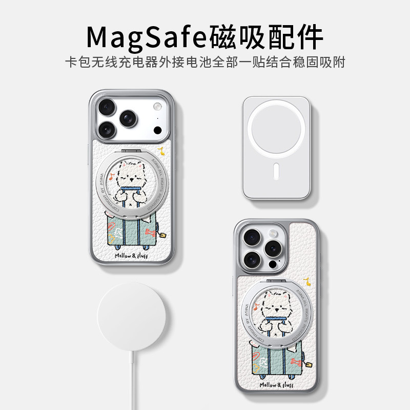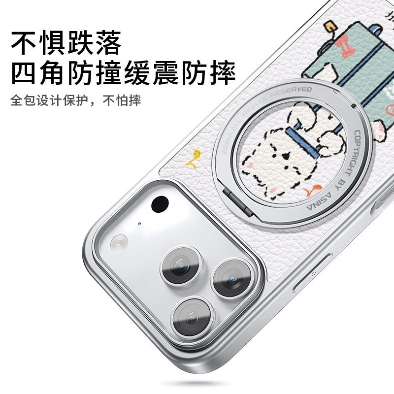 行李箱小狗适用苹果17promax手机壳新款iphone16pro皮纹防摔15呆萌保护套360旋转磁吸支架14可爱女款支点壳13