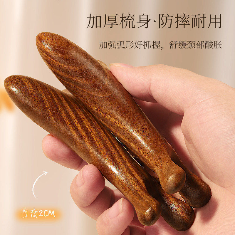 四合一多功能头皮檀木按摩梳子头部脱发头疗脸部刮痧疏通经络神器